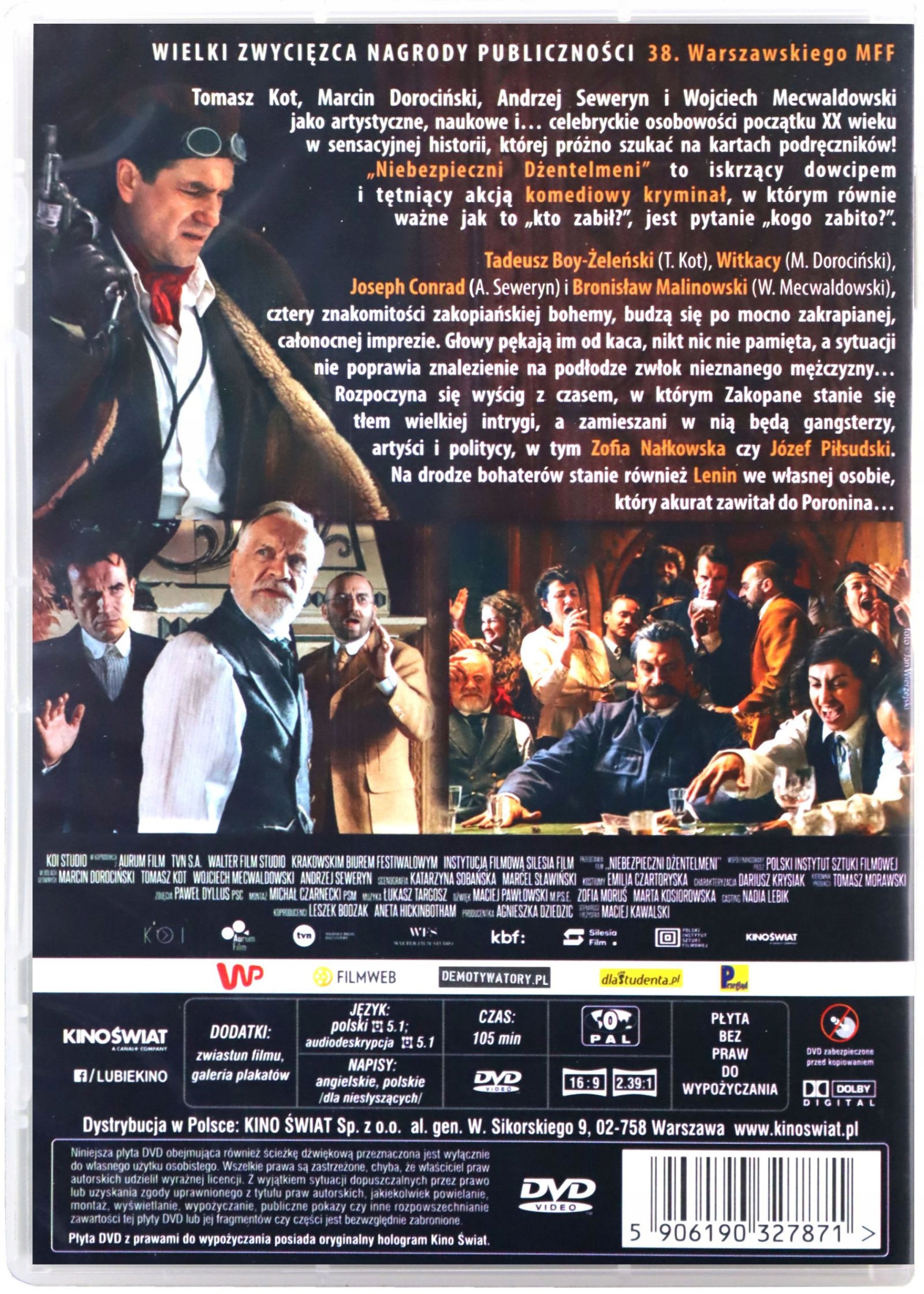 Томаш Кот, Марцин Дороциньский, Анджей Северин и Войцех Мецвалдовский как артистические, научные и? знаменитости начала 20 века в сенсационной истории, которую не найти в учебниках! «Опасные джентльмены» — это сверкающая остроумием и насыщенная действием комедийная криминальная история, в которой вопрос «кто был убит?» не менее важен, чем «кто убил?».