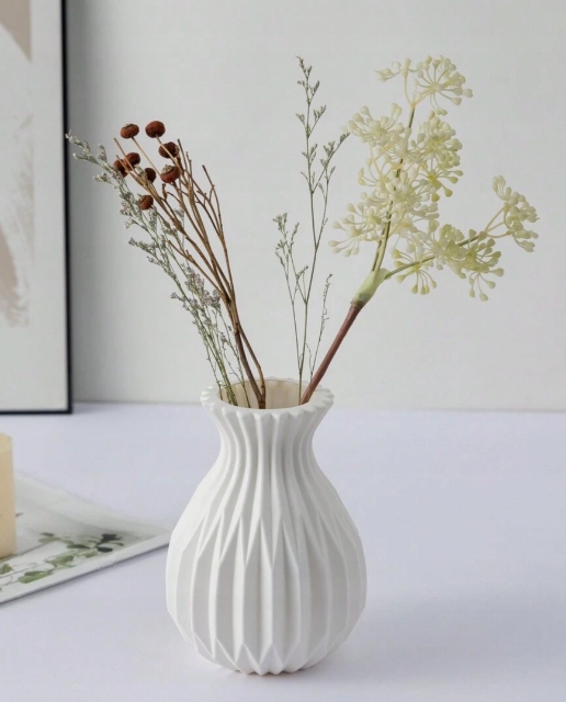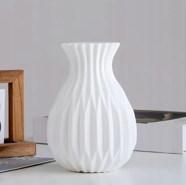 НЕБІТКА БІЛА ПЛАСТИКОВА ВАЗА ДЛЯ КВІТІВ МОДЕРН В 17 см