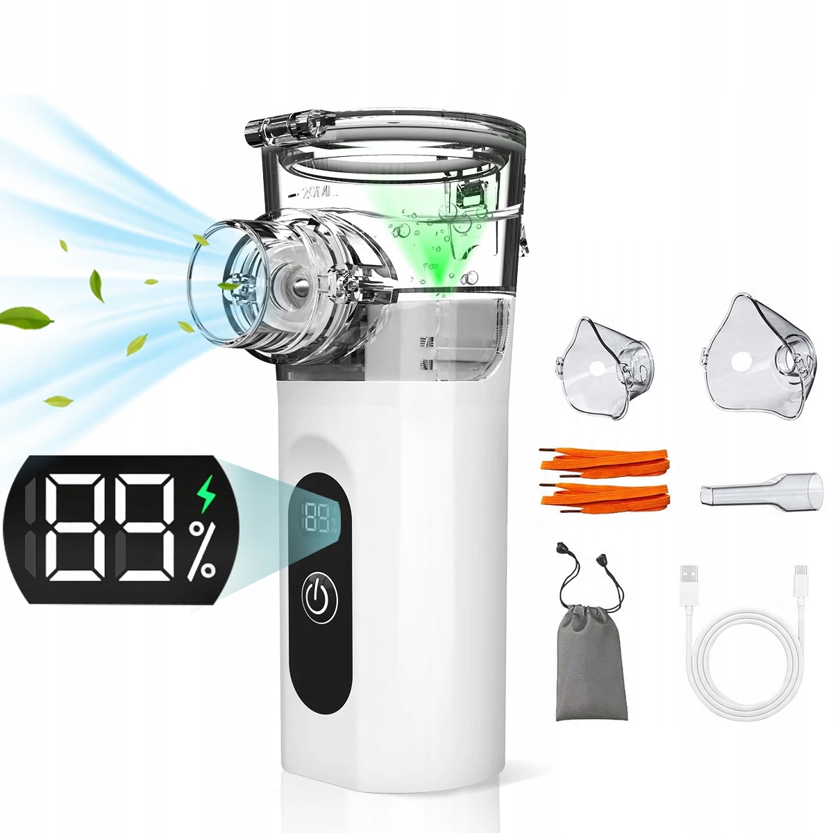 〰⭐〰✨〰⭐〰Ингаляционное устройство для взрослых и детей, портативный сверхтихий небулайзер, регулируемый размер тумана, зарядка через USB-C, цифровой дисплей и окружающее освещение, распылитель для дома и путешествий (белый)〰⭐〰✨〰⭐〰
