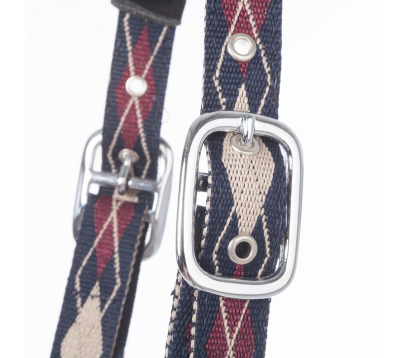 Недоуздок Classic Raute с клетчатым узором привлекает внимание. Нос и голова имеют мягкую подкладку для повышенного комфорта. Недоуздок регулируется с обеих сторон затылка и подбородка. Фурнитура серебристая.