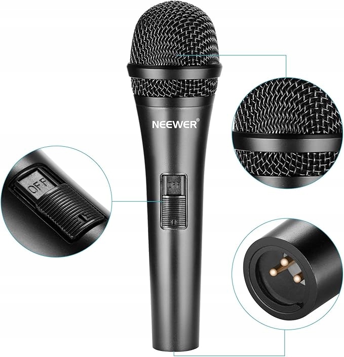 Neewer Кардиоидный динамический микрофон с мужским кабелем XLR для женского XLR, жесткий дизайн металла для профессиональных музыкальных инструментов, голосов, вещания, речи, черного (NW-040)