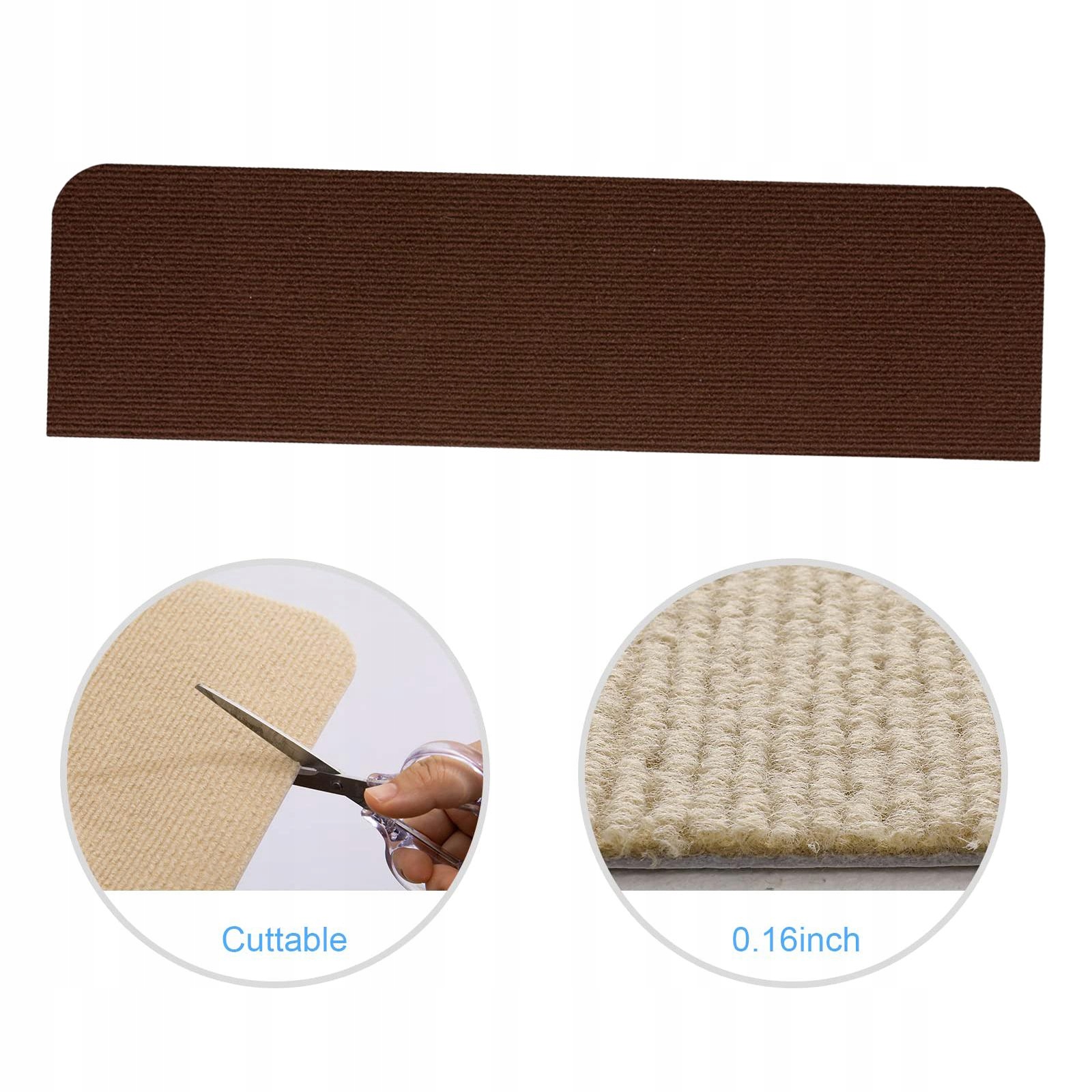 [Подходящий размер]: 30 x 8 дюймов для каждой детали. Размер подходит для большинства внутренних лестниц, а количество отвечает потребностям большинства семей. Даже если ваша походка немного уникальна, вы легко сможете разрезать ковровую дорожку ножницами.