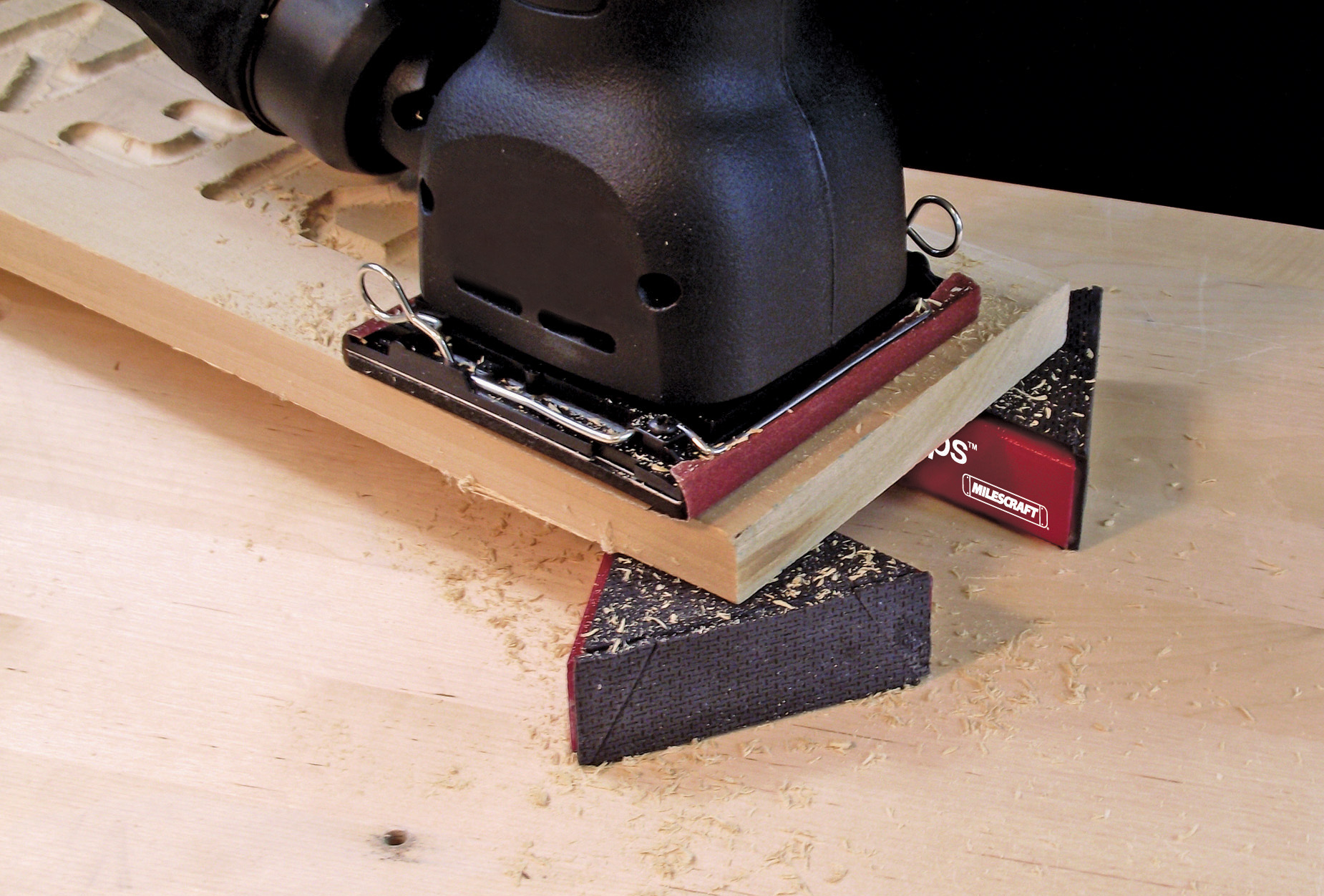 Клиновидная опора надежно удерживает заготовку на верстаке во время фрезерования, шлифования, строгания, покраски и чистовой обработки. Прорезиненная нескользящая поверхность обеспечивает устойчивость во время работы. Прочный и легкий сердечник.