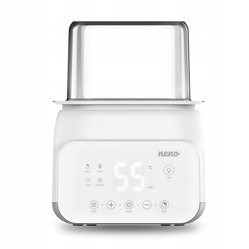 neno vita оснащен функцией стерилизации, которая обеспечивает поддержание бутылок и гигиены бутылок, увешителей и сосков. Используйте специальную корзину, прикрепленную к набору, чтобы удобно и безопасно вытащить объекты после стерилизации и избежать ожогов. Устройство имеет функцию отопления молока, благодаря которой вы можете быстро и эффективно нагреть пищу для вашего ребенка. Просто выберите правильную температуру и включите нагрев.