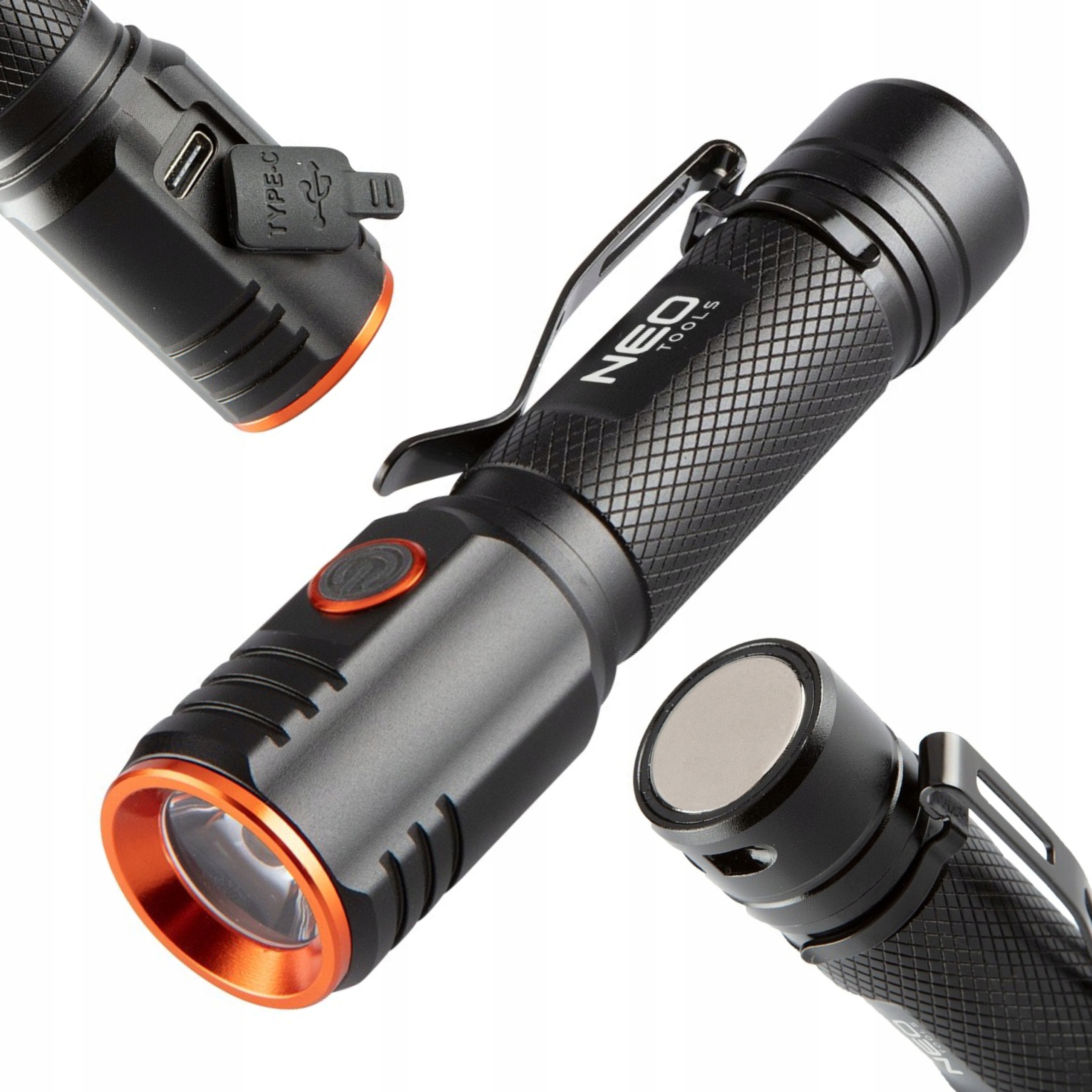 Фонарик аккумуляторный NEO 99-067 USB C 2000 лм черный