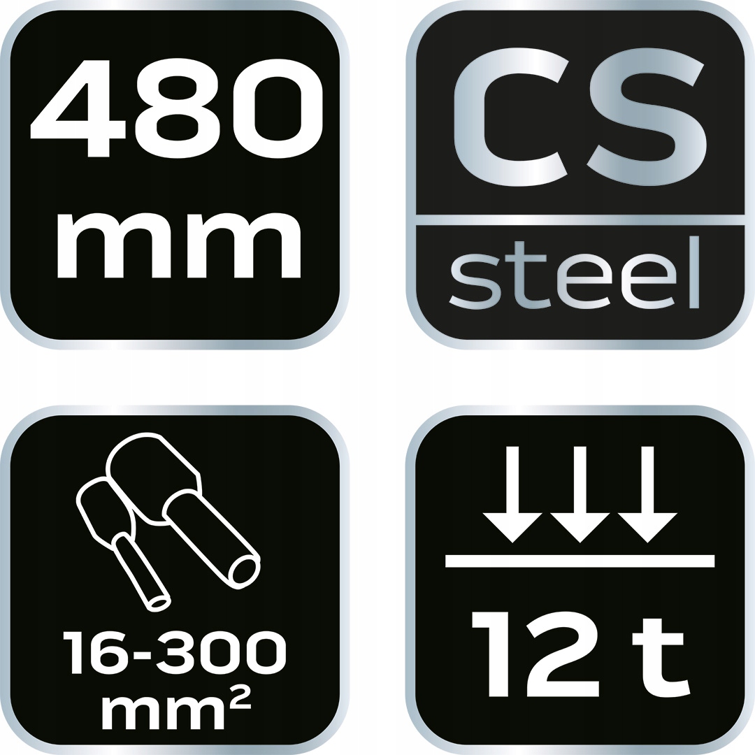 Гидравлическое ручное нажатие для электрических кончиков 16-300 мм 01-543 от NEO-это пресс для затягивания электрических наконечников и стальных канатов. Он характеризуется размером с зажимами челюсти: 16, 25, 35, 50, 70, 95, 120, 150, 185, 240, 300 мм². Инструмент имеет общую длину 480 мм и гексогенный тип зажима. Он достигает давления 12 тонн. Прыжок происходит каждые 20 мм. Прага имеет корпус из углеродистой стали. Он оснащен разделенной матрицей, роторной головкой цилиндра, матрицами блокировки желчи, поршнем, главным клапаном привода, эргономичными ручками и подвижным руком привода. Инструмент облегчает зажим, потому что он предлагает гораздо большую силу, чем ему нужно. Neo Brand Press рекомендуется для профессионалов и DIY.