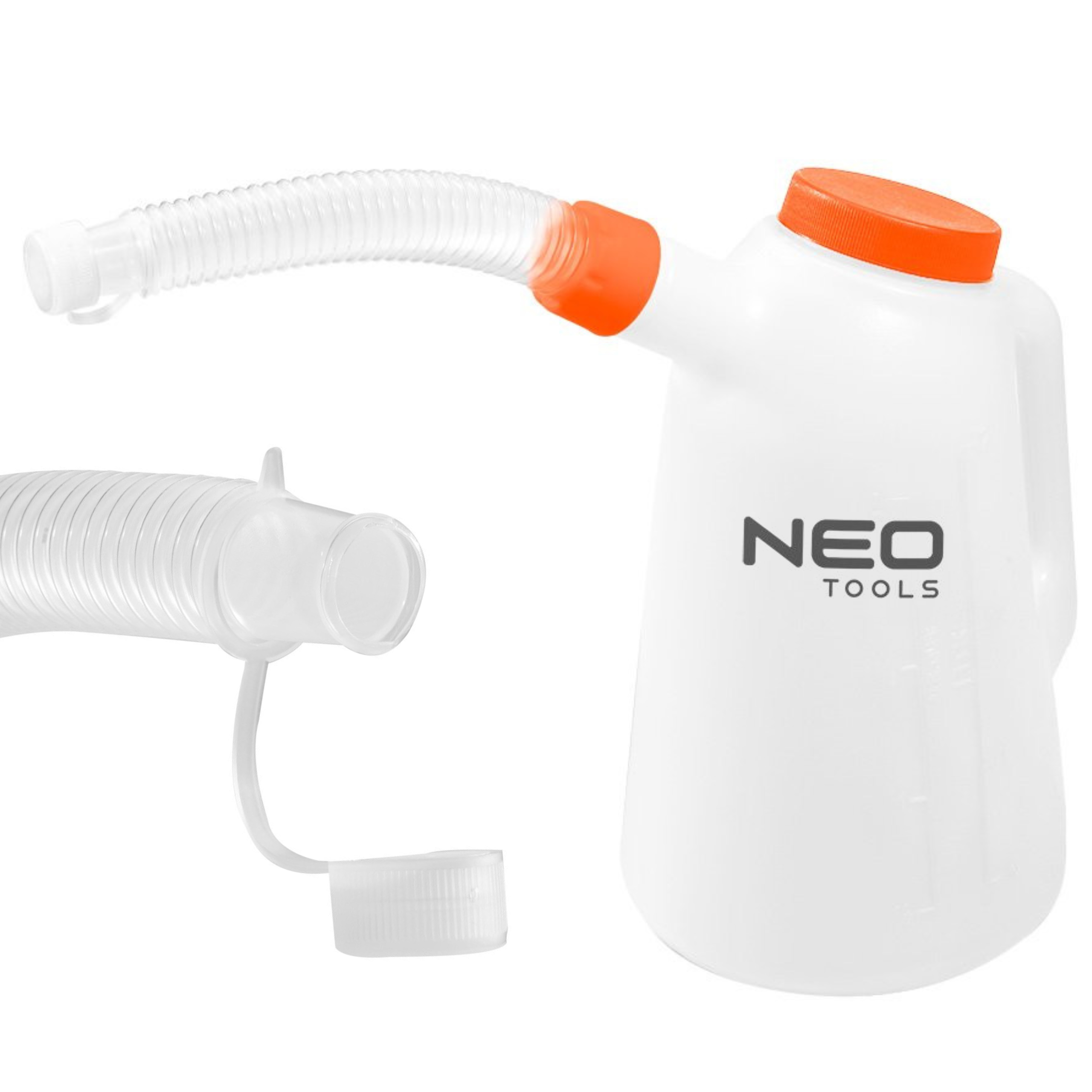 Кроме того, сбоку на наливной насадке имеется шкала, позволяющая считывать показания и дозировать жидкости, что делает процесс измерения еще более точным. Отличительная крышка с оранжевым кольцом облегчает использование продукта. Эта наливная машина NEO предназначена для дозирования и заливки различных рабочих жидкостей. Он оправдает ожидания как любителей DIY, работающих в своих мастерских, так и профессионалов, которым требуются точные инструменты. Это не только практичный, но и прочный и долговечный продукт.