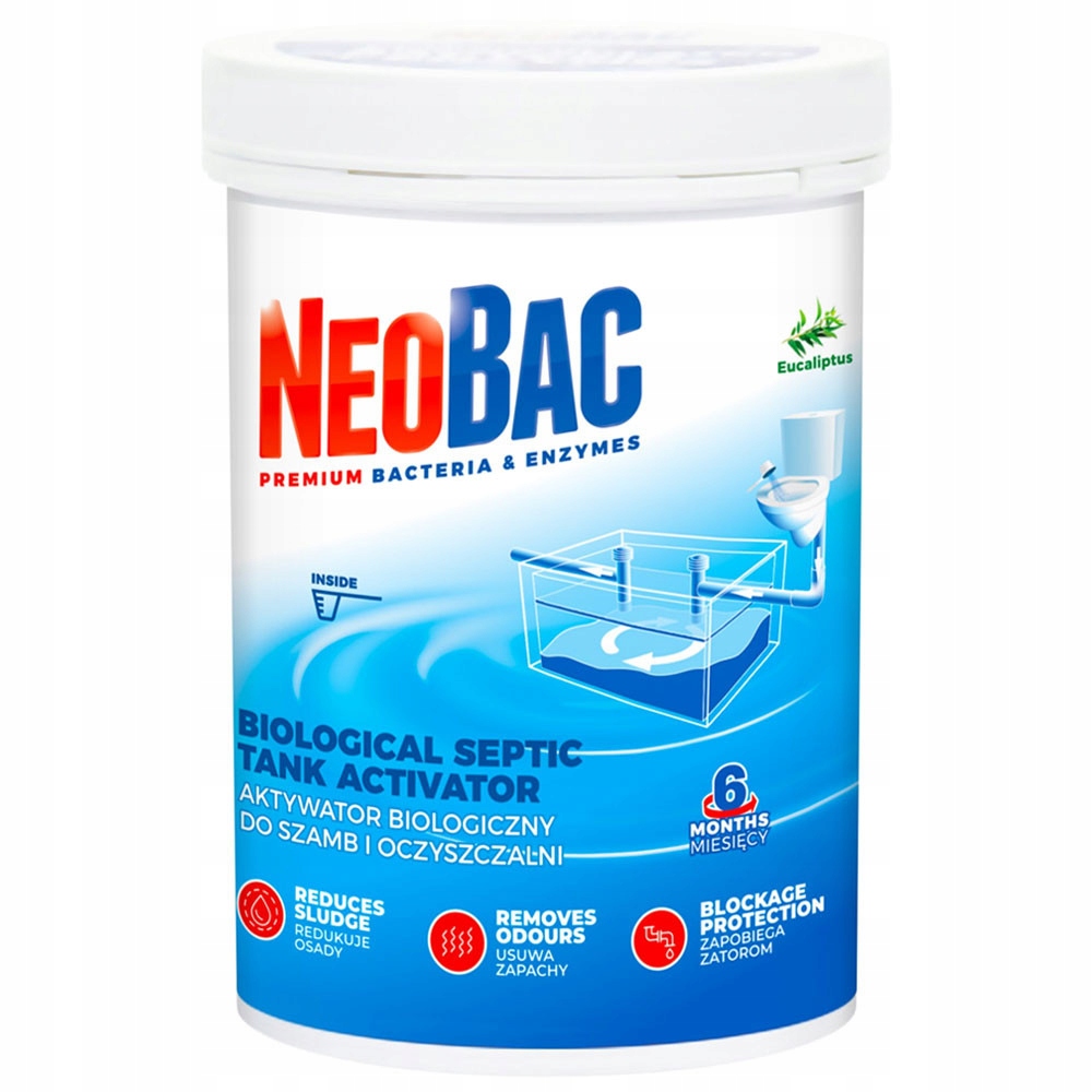 NeoBac — инновационный биопрепарат, созданный для биоразложения сточных вод в септиках и бытовых очистных сооружениях. Содержит специально подобранный композит бактериальных штаммов и высокую концентрацию ферментов, которые контролируют и ускоряют естественный процесс разложения нечистых веществ в аэробных и анаэробных условиях.