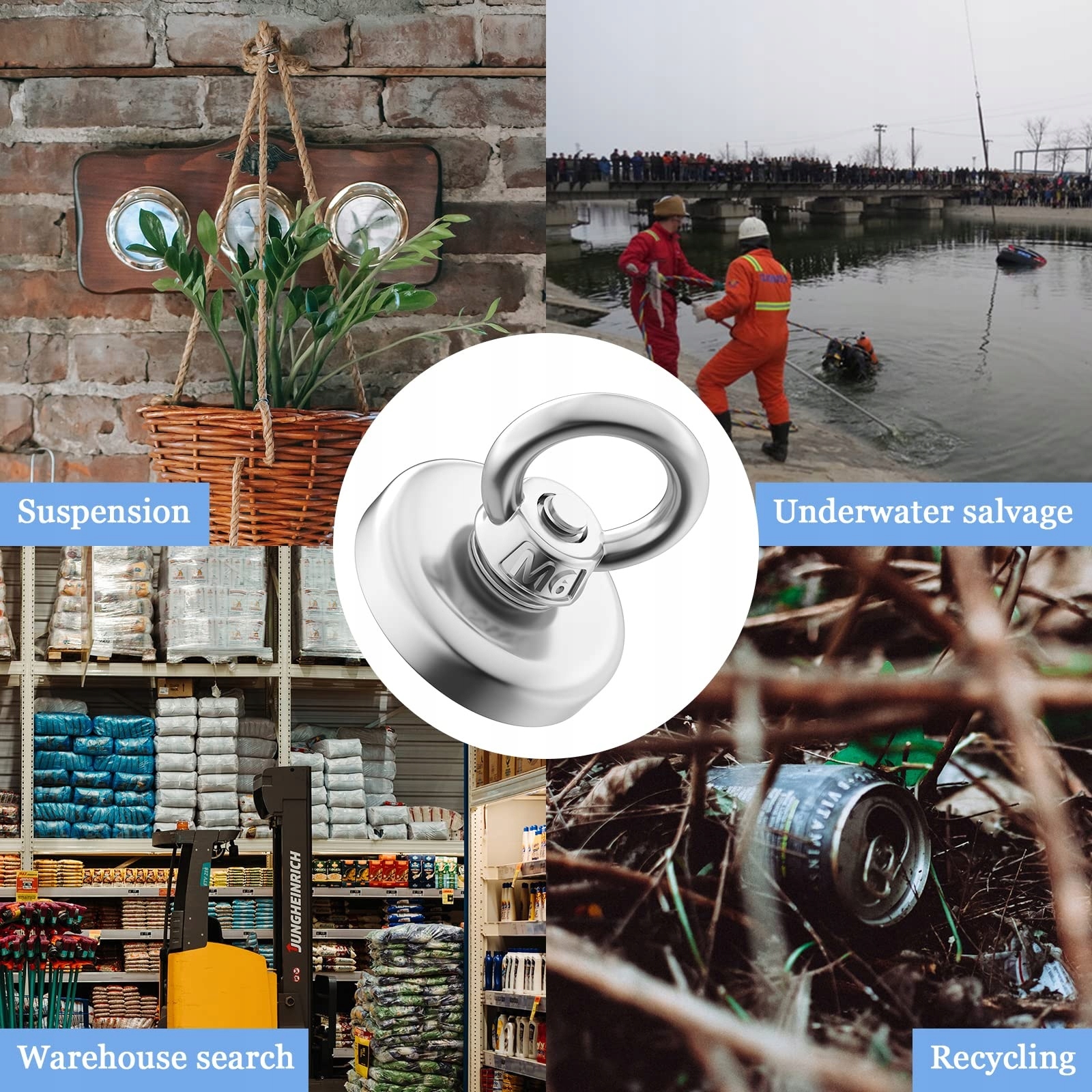 Многофункциональная уникальная конструкция с коническим отверстием и болтом с проушиной идеально подходит для сохранения различных железосодержащие никелированные материалы под водой и хорошая идея для ловли магнитом, подъема, подвешивания и загрузки приложений. Получайте удовольствие от поиска таких предметов, как рым-болты, винты, крючки, застежки и т. д. в гараже или во дворе.