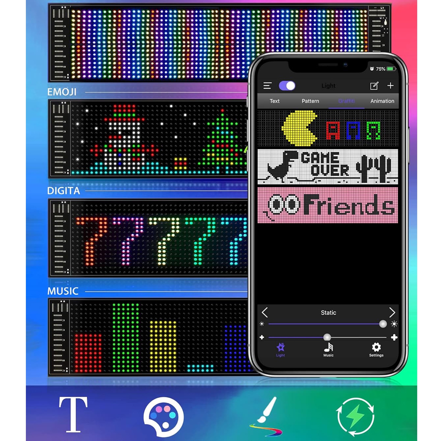 ✨【 Светодиодная пластина】 Светодиодная пластина, 5 В/2 кабеля, 4,5 м, обеспечивает безопасное использование На ветровом стекле и задних автомобильных окнах; Широкое использование состоит из светодиодных экранов, автомобильных знаков, рекламных плат, а также для вывода и входных плат. Широкое использование в автомобилях, магазинах, барах, гостиничных вечеринках, кинотеатрах, отелях, дома и в качестве рождественского или свадебного украшения. Размеры экрана 16 x 64 пикселей - очень легкие; Он поддерживает прокрутку - покажите людям рекламный эффект, используя светодиодную пластину прокрутки. Паттерны ясны, методы отображения универсальны; Устойчивость к IP66 - коллоидная смола добавляется к поверхности светодиодной матрицы, чтобы лучше защитить диоды лампы. Bluetooth Connection - Загрузите приложение, затем включите Bluetooth, а затем вы можете легко подключить столик светодиодного света; С помощью музыкального режима - когда вы находитесь в музыкальном режиме, цифровые выборы на рисование танцы с ритмом музыки. и используется без регистрации. После подключения через Bluetooth просто используйте готовые фотографии или анимацию. Но также возможно написание текста или любого дизайна. Программирование выполняется с использованием приложения, оно может работать почти интуитивно. Таким образом, вы можете установить разные режимы, вы можете выбрать или свободно настроить описание. Слишком низко, рекомендуется использовать источник питания мобильной сети и разумный источник питания USB с максимальной интенсивностью 2 ампер; Кабель питания строится -ин -переключатель/переключатель и модуль для подвески динамических эффектов с одной кнопкой; Подключенный USB -кабель достаточно длинный, чтобы продолжить удаленные источники питания, которые будут достигнуты