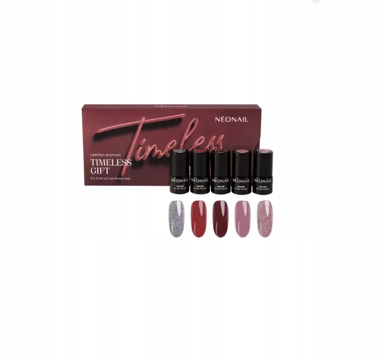 Ограниченный рождественский набор гибридных лаков для ногтей NEONAIL TIMELESS GIFT, 5 x 3 мл набора УФ-гель-лаков. Набор идеально подходит для элегантного подарка, поскольку его упаковка не требует дополнительного оформления.