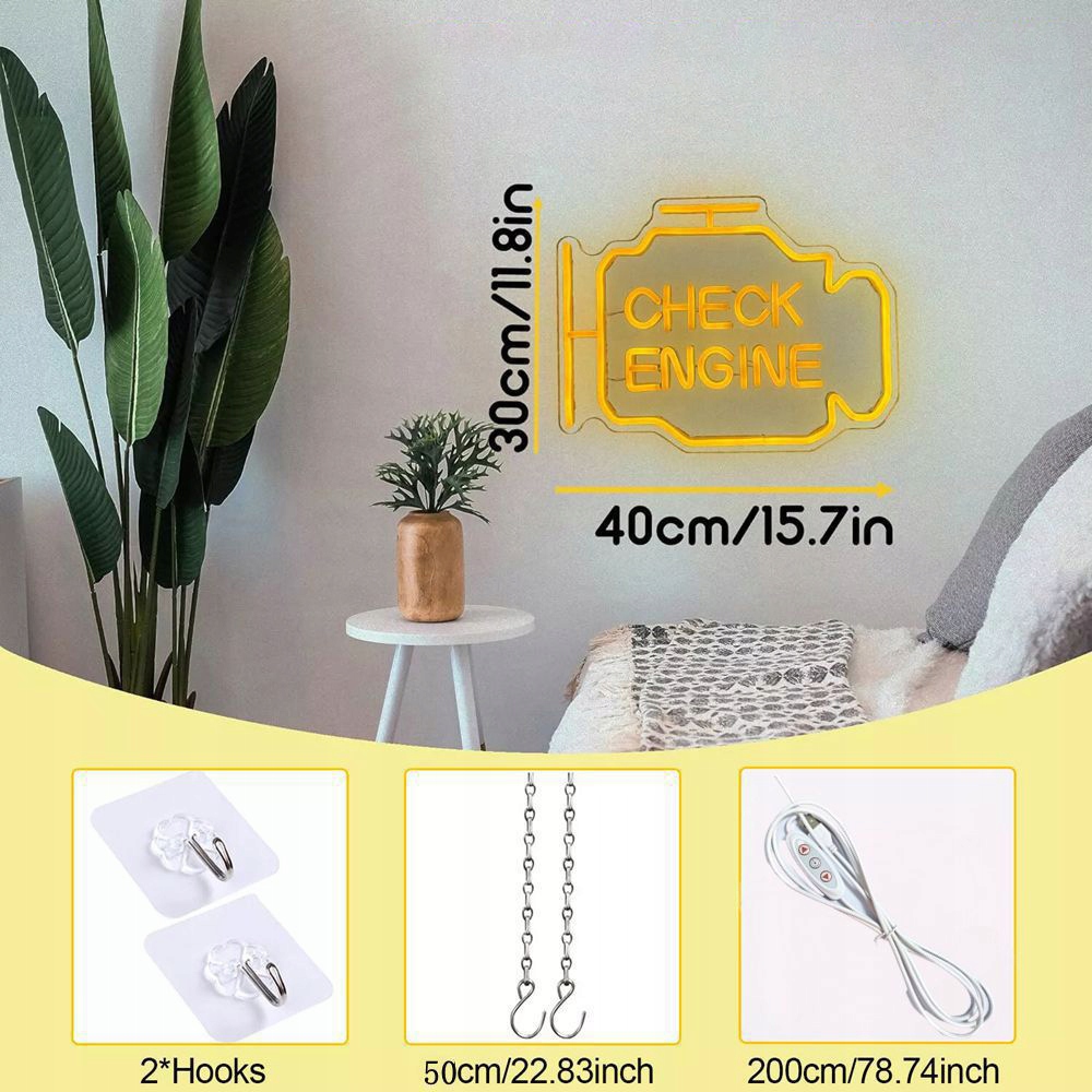 - Неоновый контрольный двигатель легко превратит ваш гараж в самый эпический развлекательный центр благодаря этой неоновой отмечке в форме автомобильных аксессуаров, который сразу же изменит ваше пространство и сделает вас счастливыми. Это идеальное дополнение к декору вашей игровой комнаты и приносит хороший цветовой акцент, который будет вызвать ревность с вашими приятелями