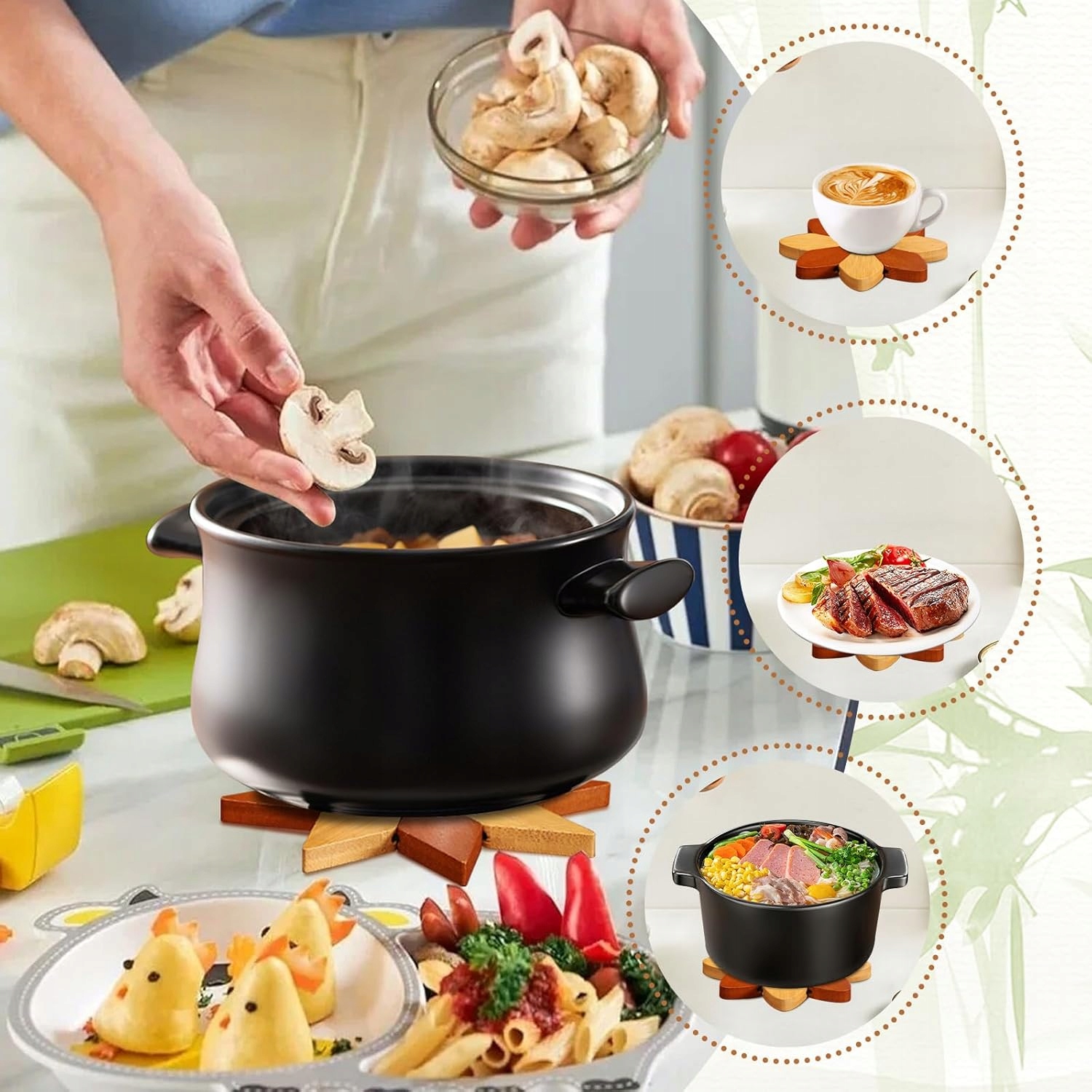 На подставках в форме ветряной мельницы можно разместить чашки, миски, тарелки, чайники, сковороды, кастрюли для фондю и другую посуду. Их можно использовать на различных поверхностях, таких как стекло, мрамор, дерево или камень. Они идеально подходят для кухни, гостиной, столовой и других мест в доме, предлагая как функциональность, так и эстетику в повседневном использовании.