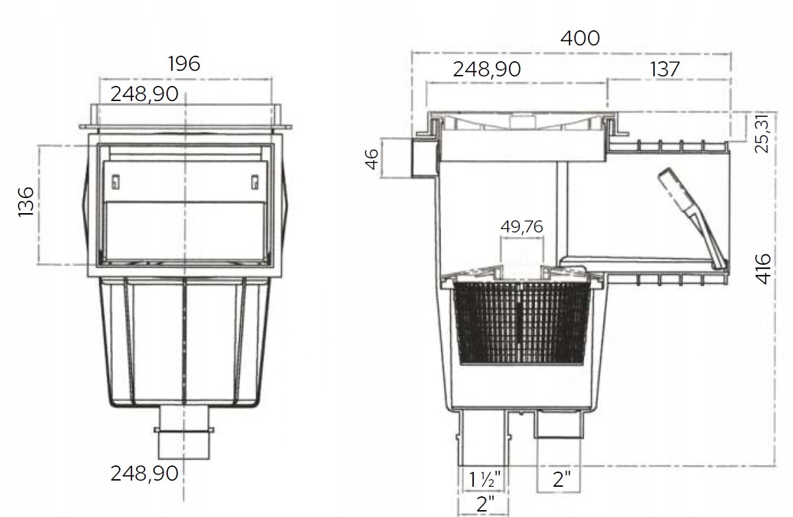 Skimmer имеет параллельные канавки укрепления для дополнительной долговечности. Он блокирует в корпусе скиммер.
