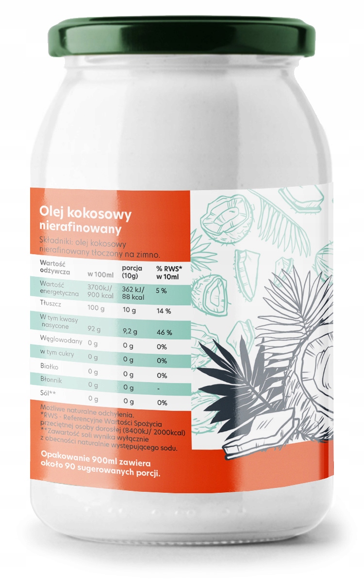 Нерафинированное кокосовое масло 900 мл дополнительной девственницы