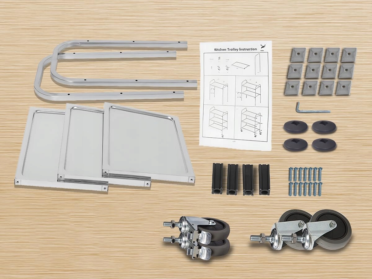 Пакет содержит все аксессуары и подробные инструкции сборки продукта. Кроме того, коляска из нержавеющей стали имеет защитную пленку на поверхности, которую можно легко удалить путем нагрева с феном.