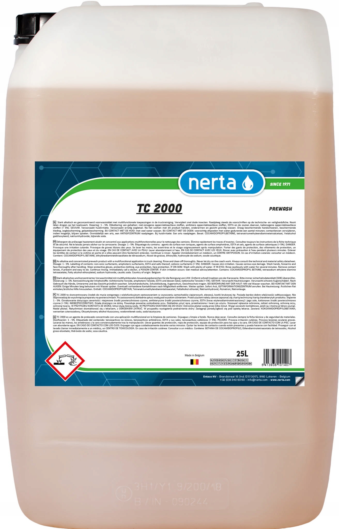 NERTA TRUCK CLEANER 2000 – щелочное высококонцентрированное чистящее средство многофункционального действия. Предназначен для мойки грузовых автомобилей. Применяется на предварительной мойке и мойках САМООБСЛУЖИВАНИЯ. Может использоваться в моечных аппаратах высокого давления, пенообразующих системах и для ручной стирки. NERTA TRUCK CLEANER 2000 легко удаляет сильные загрязнения и насекомых. При мойке пенным методом образуется обильная и устойчивая пена.