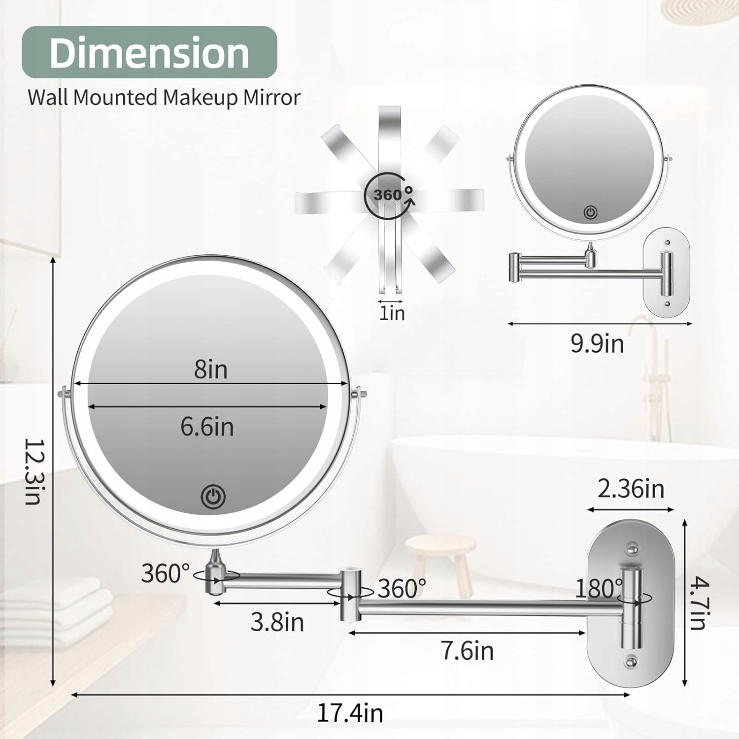 Вы можете использовать зеркальное зеркальное зеркальное зеркало, на стенах нет неприглядных кабелей! (Зарядный кабель прикреплен, зарядное устройство не включено) 10 -кратное зеркало увеличения показывает детали лица при применении подводки для глаз, туши, идеально подходящей для деликатного макияжа, вы также можете заменить 1x зеркало для всего макияжа лица. Держите 4 дюйма расстояния при использовании 10-кратного зеркала с освещением, чтобы избежать головокружения и искажения.