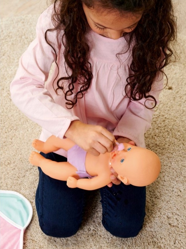 Кукла Dirty Baby из коллекции New Born Baby – уникальное изделие, выполненное исключительно эстетично и с особым вниманием к деталям. Изделие чрезвычайно реалистично - на лице имеются «морковные пятна», которые можно смыть теплой водой (выше 31°С). Краска на лице куклы меняет цвет под воздействием тепла, становясь невидимой, благодаря чему мытье куклы выглядит для ребенка вполне реалистично. Помимо куклы в набор входят необходимые купальные принадлежности – губка в форме сердечка и очаровательное полотенце с капюшоном.