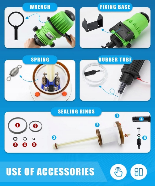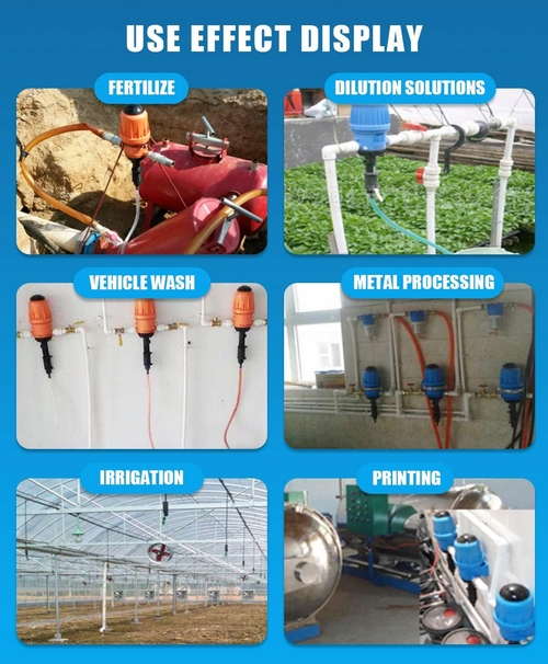 [Применение]: орошение удобрениями, обслуживание оборудования, садоводство, цветы, животноводство, охрана окружающей среды и очистка воды, промышленная гигиена, прозрачность транспортных средств, пищевая промышленность, производство питьевой воды или другие отрасли, требующие определенной пропорции. разбавление.