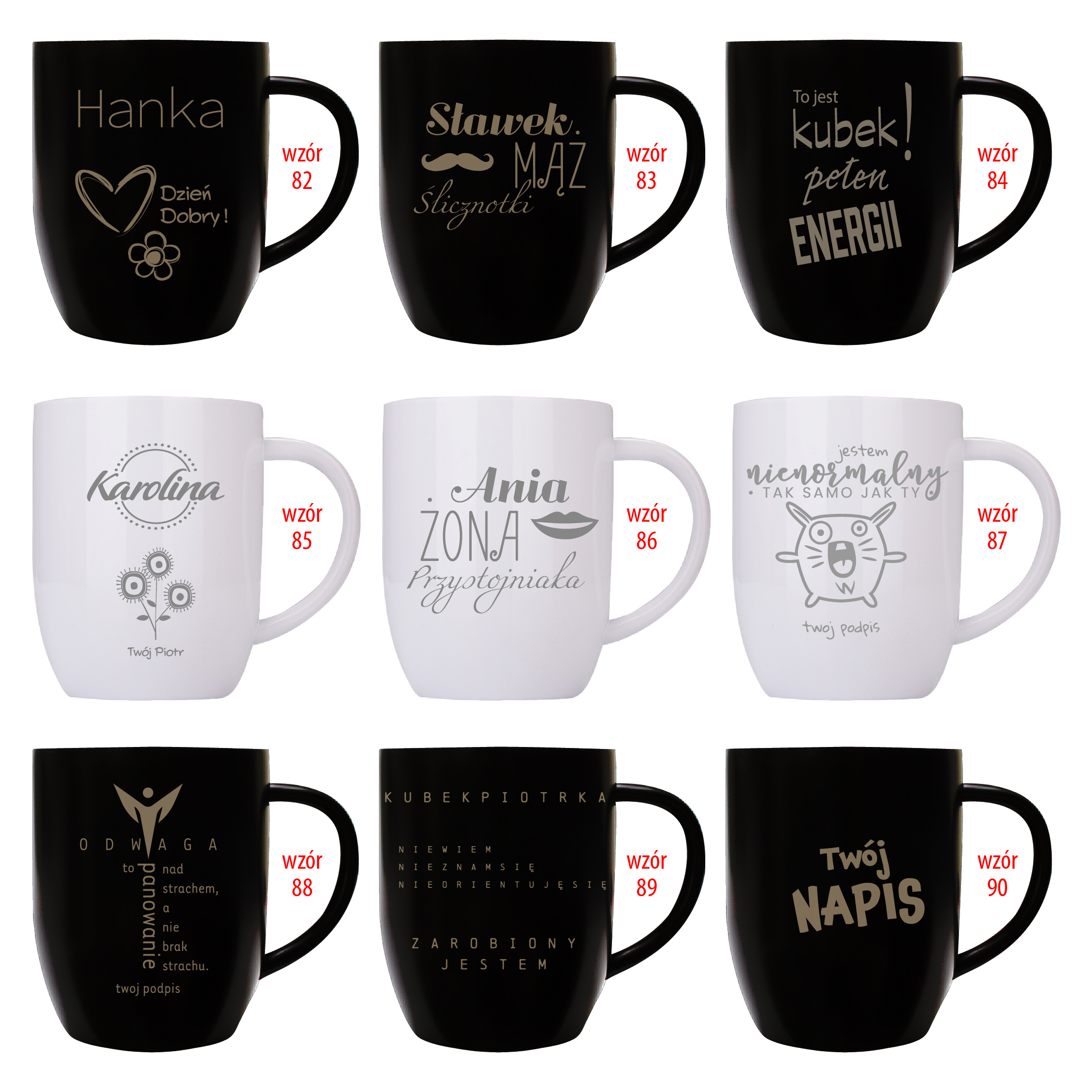 2. укажите номер узора, название, дополнительный текст по желанию (например, дату, посвящение, девиз, ваш дизайн, мотив и т. д.) В стоимость входит гравировка на одной стороне кружки.