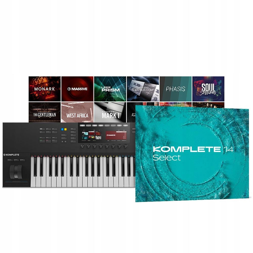 - включает KOMPLETE 14 SELECT: MASSIVE – виртуальный аналоговый синтезатор , MONARK – легендарный монофонический синтезатор, THE GENTLEMAN – классическое фортепиано, DRUMLAB – семплированные/синтетические барабаны, REAKTOR PRISM – синтезаторный полифонический, SCARBEE MARK 1 – электропиано, RETRO MACHINES – 20 легендарных синтезаторов, VINTAGE ORGANS – семплированные классические электроорганы, ЗАПАДНАЯ АФРИКА - этнические ударные инструменты, SOLID BUS COMP - мощный компрессор, REPLIKA - качественный дилэй ul>
