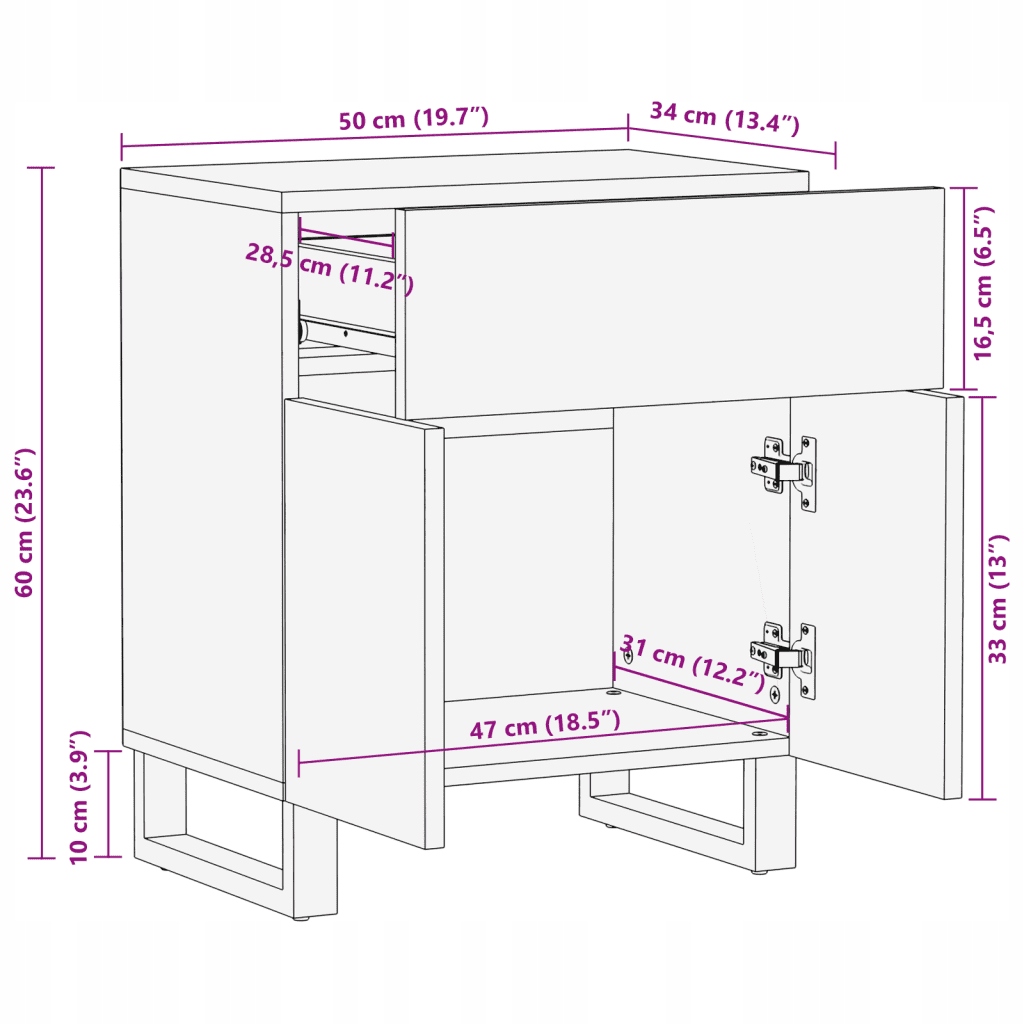 Ночной шкаф, 50x34x60 см, твердое дерево акации