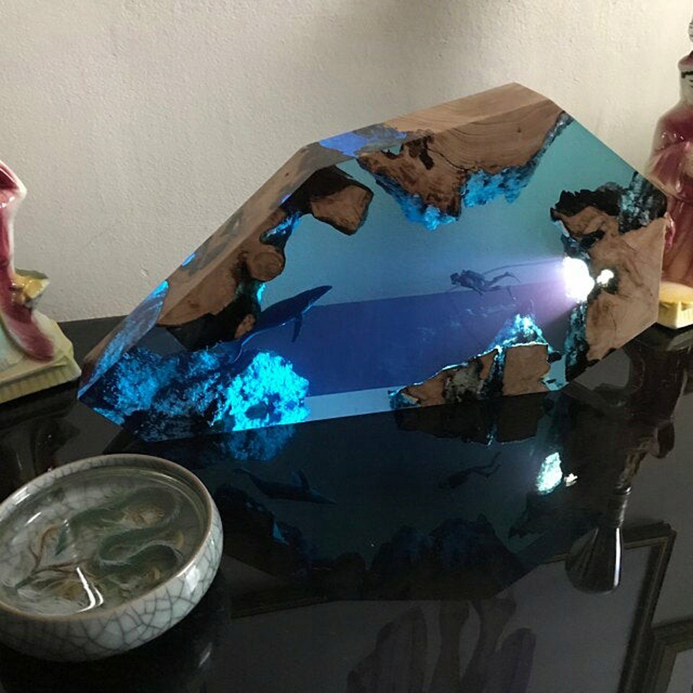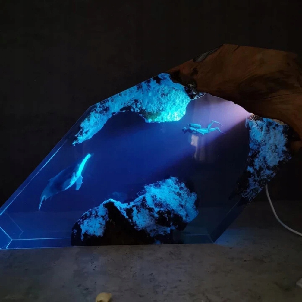 ✅3. Размер: 24x9x2,5 см/9,4x3,5x1,0 дюйма. Большой светильник из эпоксидной смолы и дерева, ныряльщик и горбатый кит.