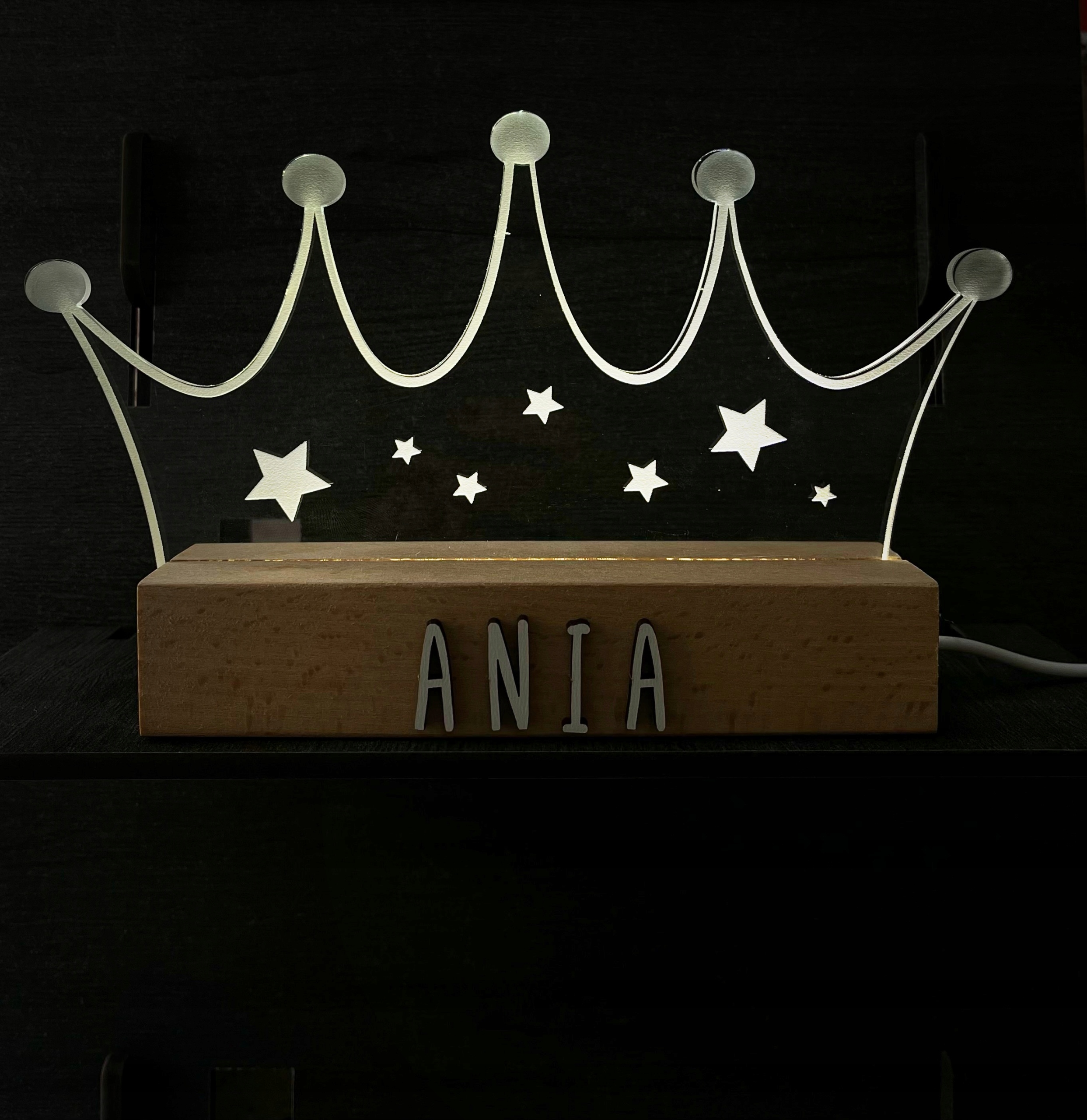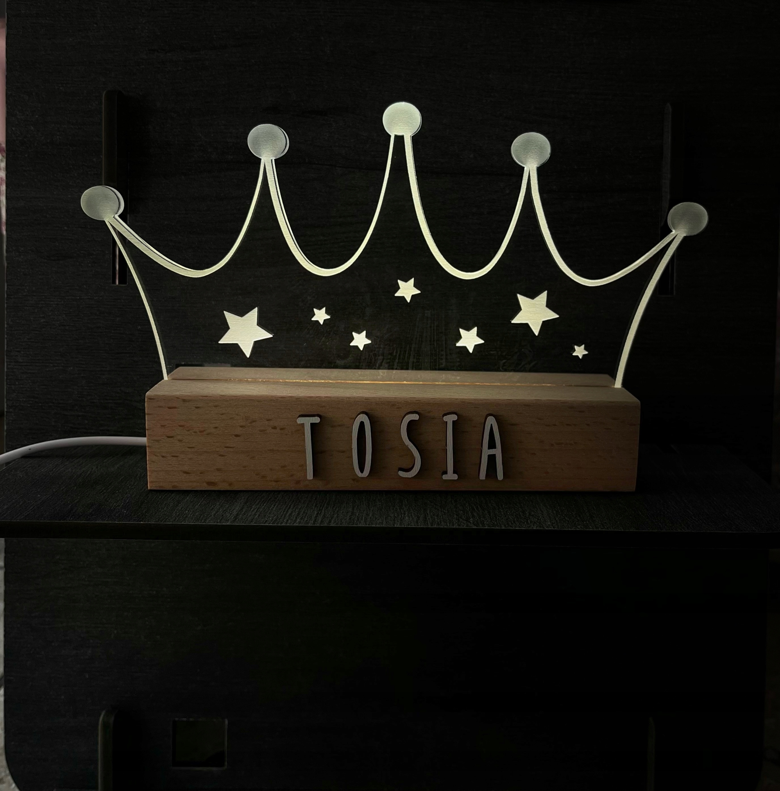 СВЕТОДИОДНЫЙ НОЧНИК С ИМЕНЕМ ДЛЯ ДЕТЕЙ ДЕРЕВЯННАЯ ИСПАНСКАЯ КОРОНА USB