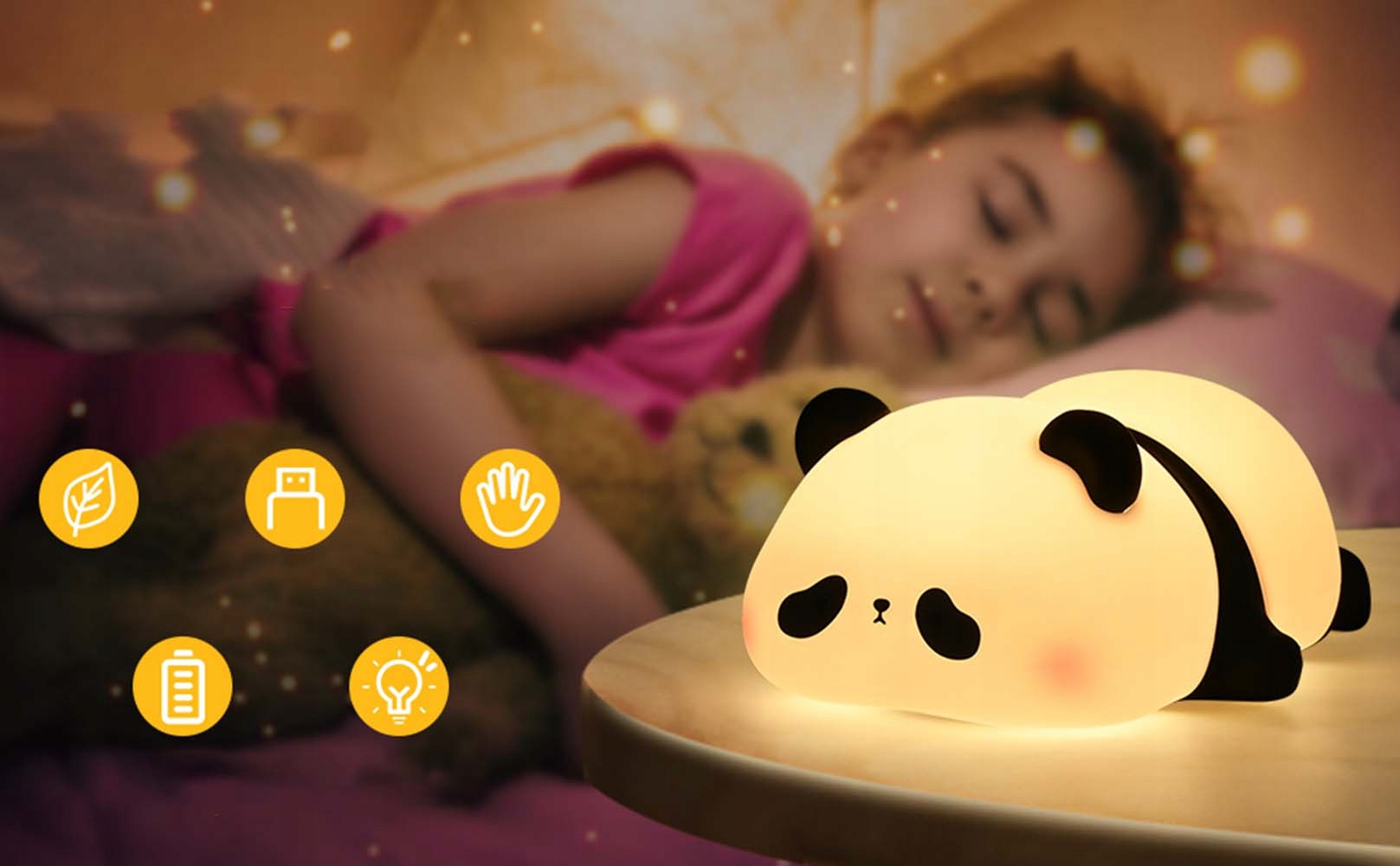 НОЧНАЯ ЛАМПА «ПАНДА» МЯГКИЙ СИЛИКОНОВЫЙ СЕНСОР ТЕПЛЫЙ СВЕТ ДЕТСКАЯ ЛАМПА