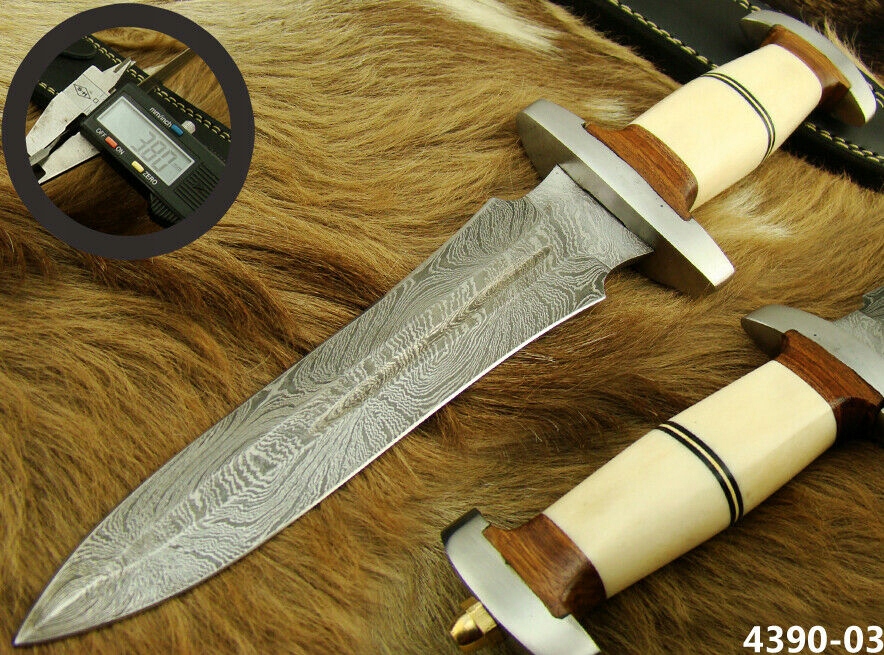 Это большой кинжал-нож-меч, очень тесно связанный с культовыми немецкими мечами СС. Клинок изготовлен из дамасской стали.