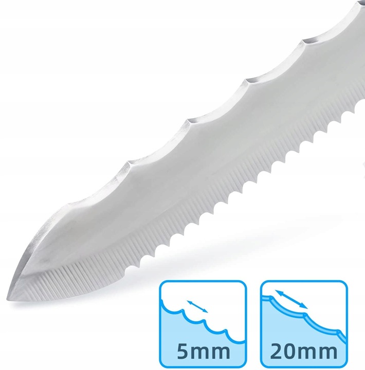 - ✔️ Нож имеет две стороны - пильное и волнистое лезвие. Благодаря этому вы можете легко резать как твердые, так и мягкие материалы, не опасаясь, что они начнут истираться