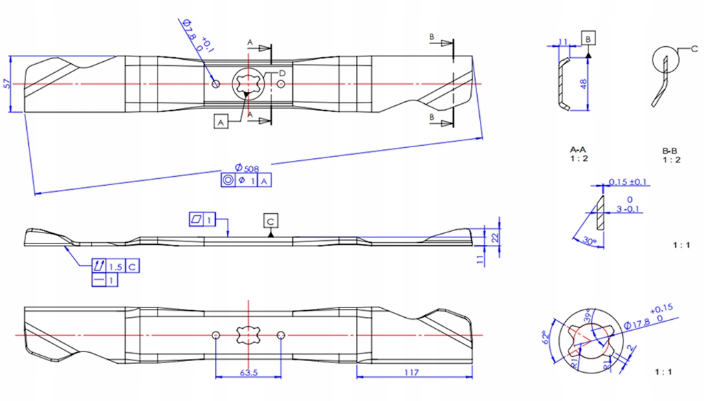 НІЖ КОСАРКИ ДЛЯ MTD 51 см. ТРИМАЧ ЗІРОЧКИ