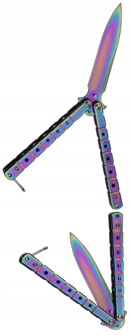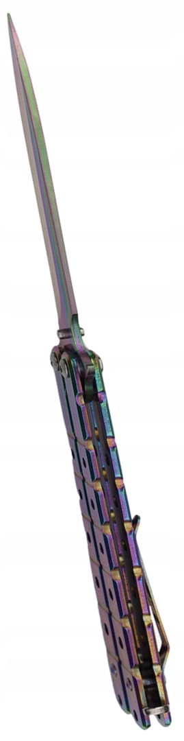 Проворный нож-бабочка в феноменальном радужном цвете.