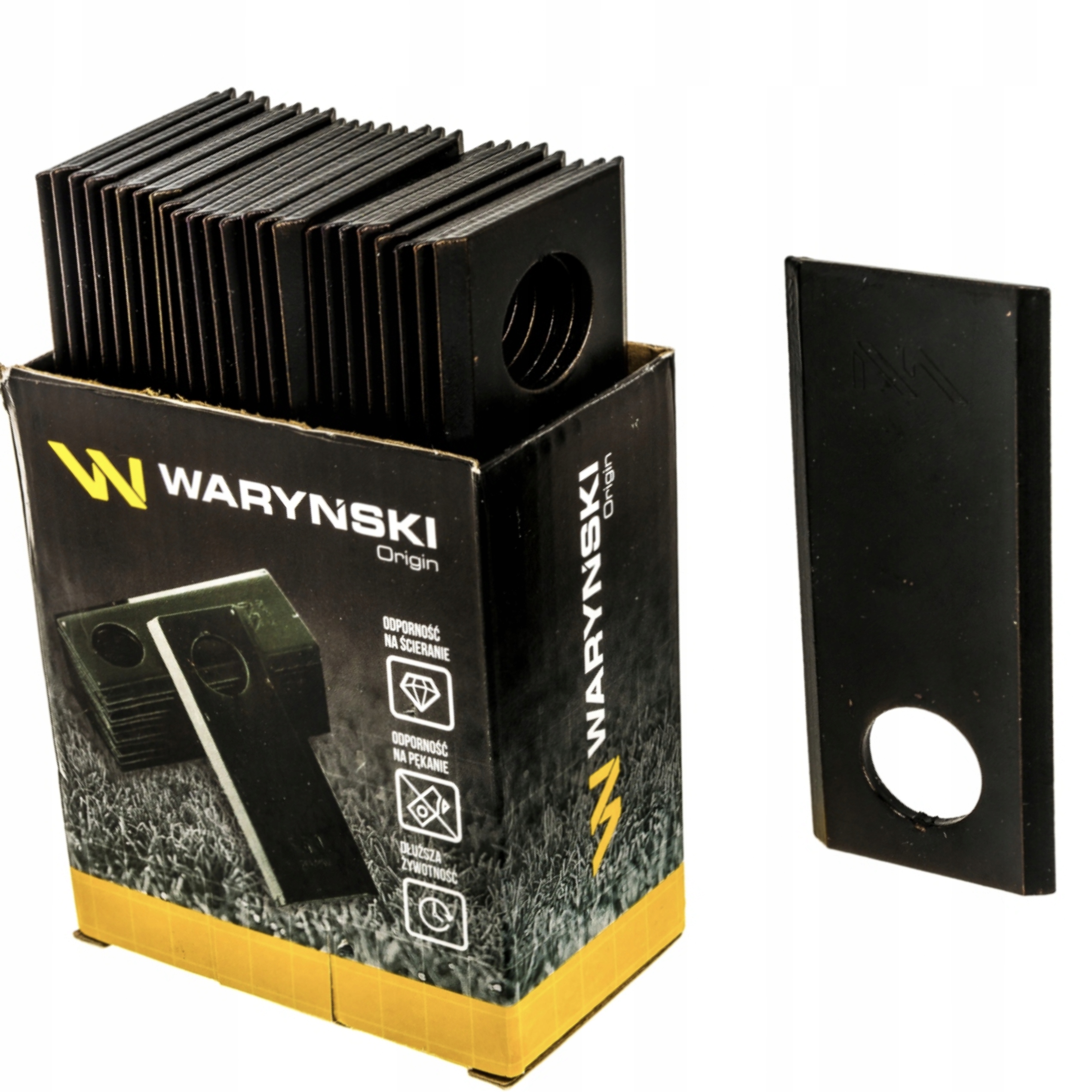 Ножи Waryński для роторных косилок изготавливаются, прежде всего, из очень тщательно отобранной стали, чему предшествуют многочисленные полевые испытания. Они характеризуются высокой стойкостью к истиранию и не подвержены растрескиванию при столкновении с инородным телом. Ножи марки Waryński гарантируют высокую точность стрижки в течение длительного периода использования.