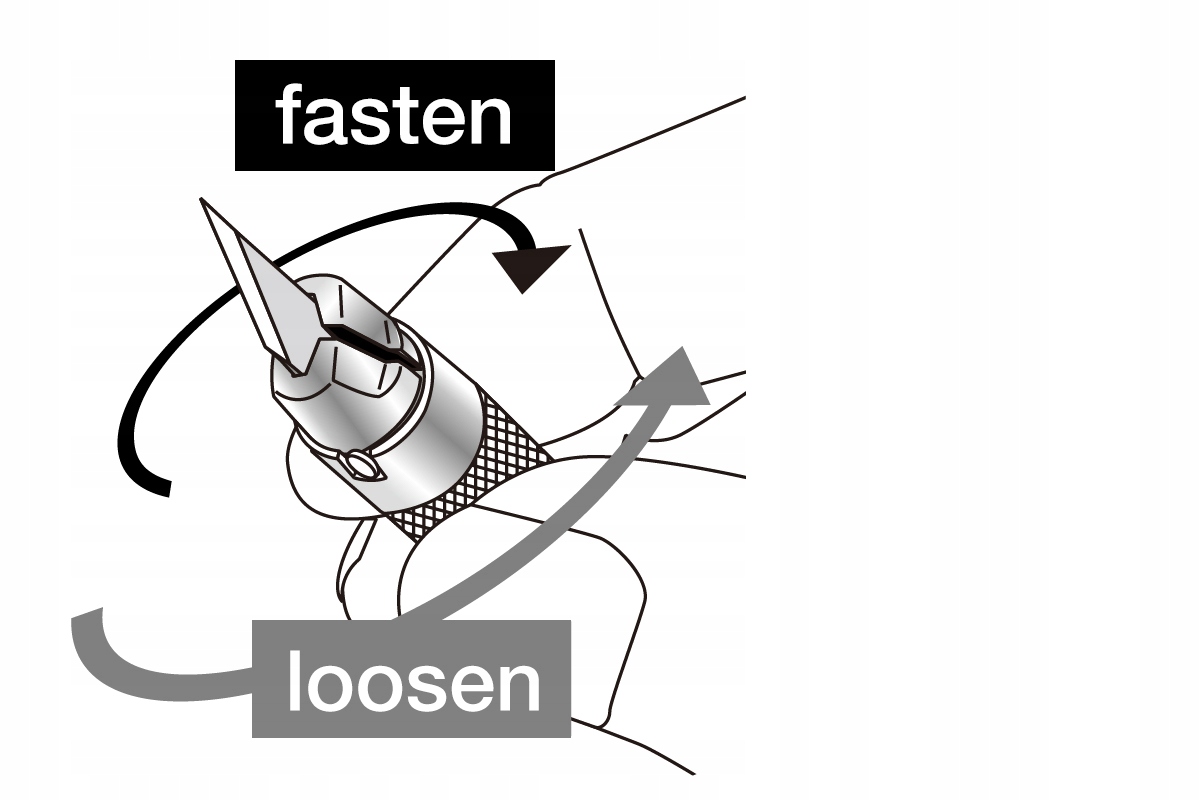 Металлический зажим позволяет надежно зафиксировать лезвие в держателе и легко заменить.