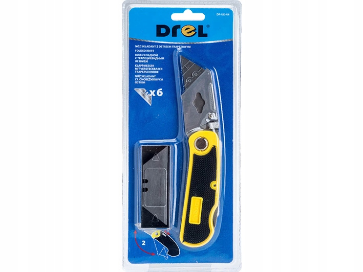 Нож с трапециевидным лезвием 19 мм, корпус пластиковый, 5 лезвий ДРЭЛ.