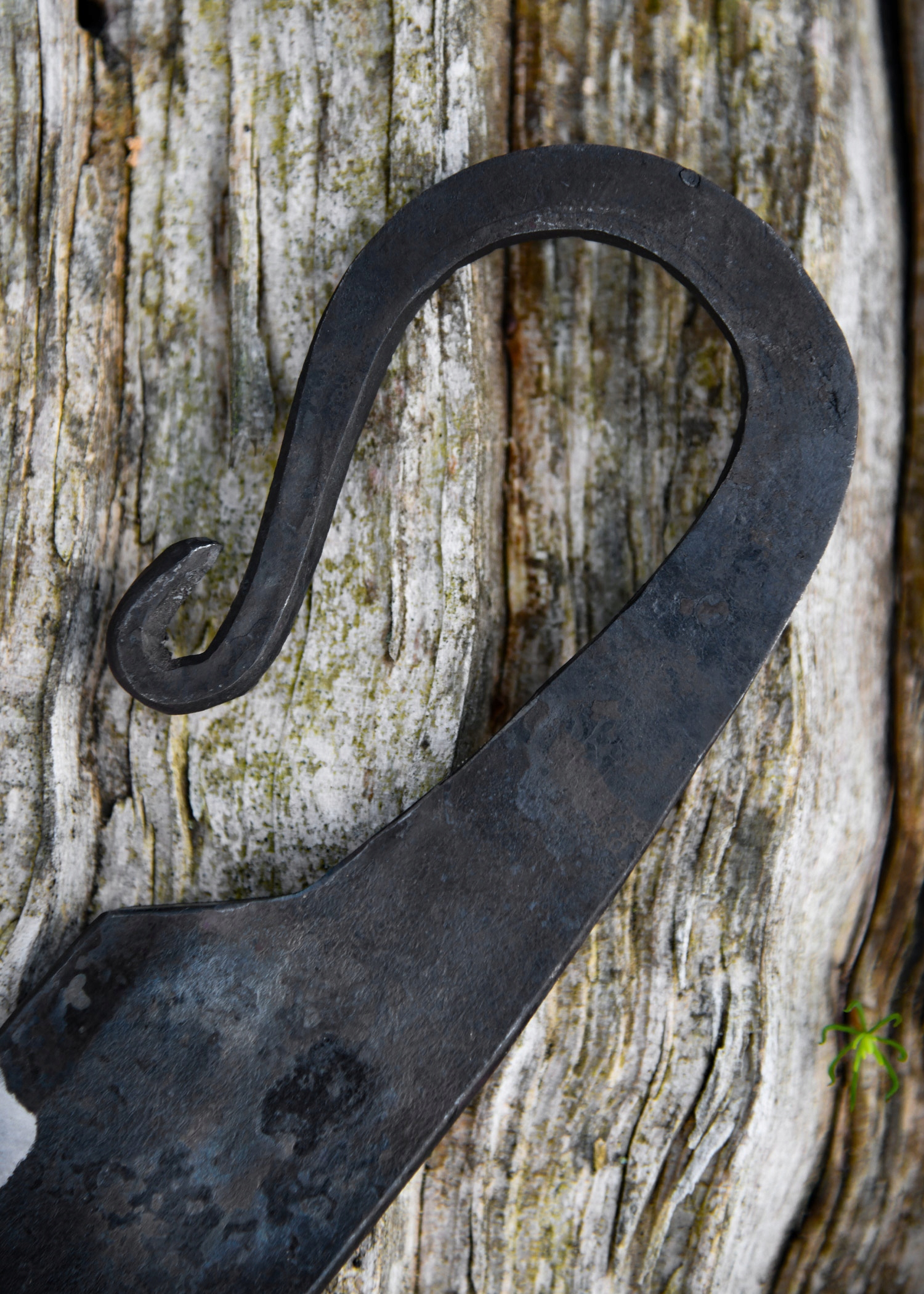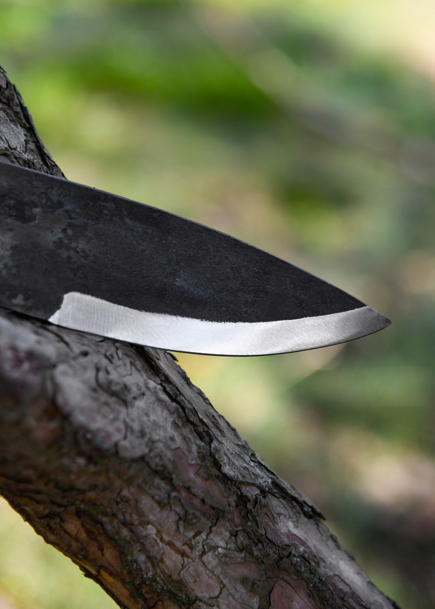 Типичная форма раннесредневекового универсального ножа. Он выкован вручную из углеродистой стали толщиной 2 мм. В комплект ножа входят замшевые ножны (цвет коричневый - оттенок высылается случайным образом) с держателем на ремень.