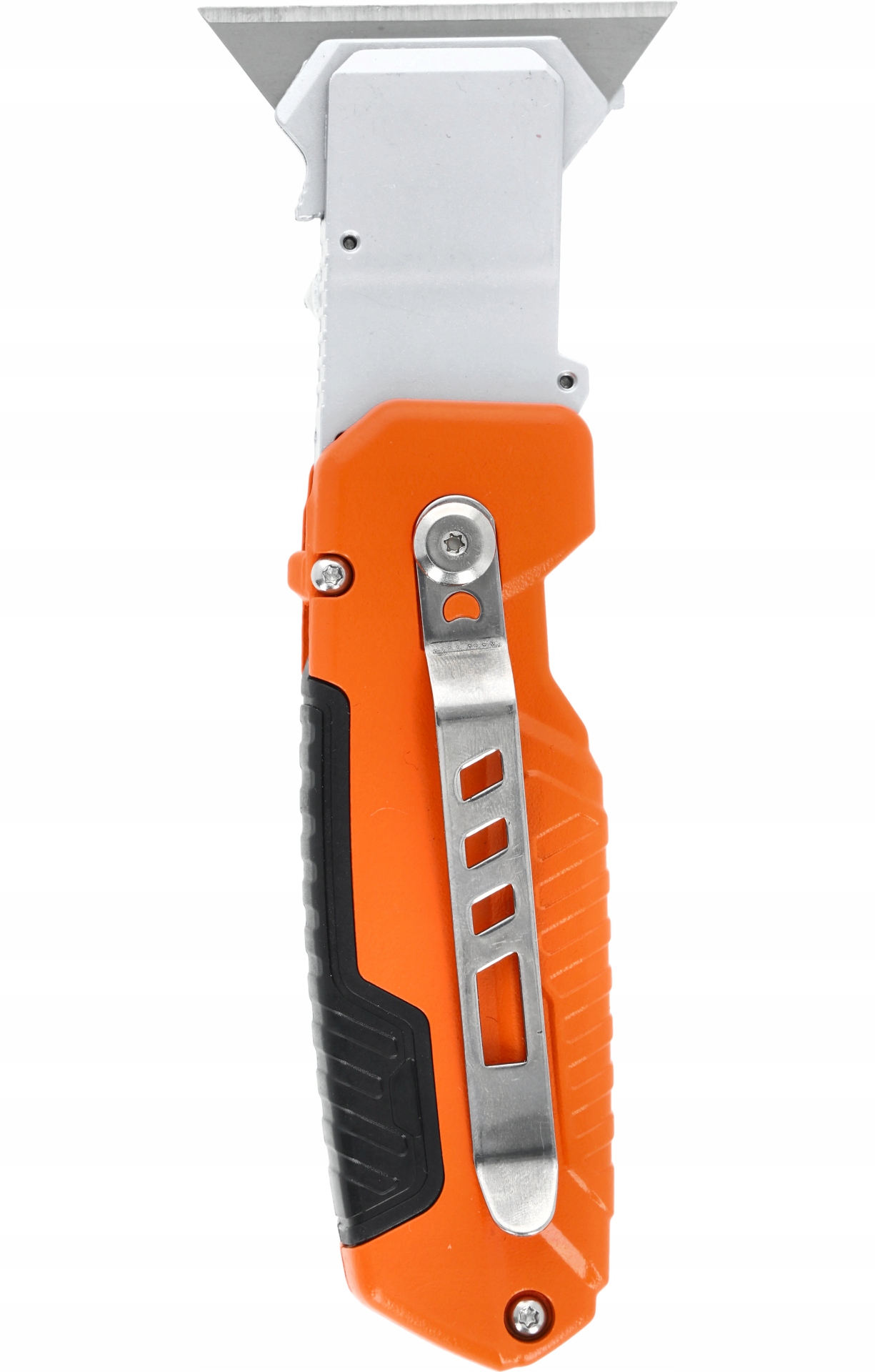 Складное универсальное нож - это твердый и универсальный инструмент, посвященный как профессионалам, так и для DIYERS. Благодаря металлической конструкции из алюминия и трапециевидного лезвия, инструмент работает в разрезании картон, обои, кабелей, фольги или ковров. Уникальная функция скребка делает его еще более практичным, что позволяет удалить клей, краски, силиконовые остатки или грязь с различных поверхностей.
