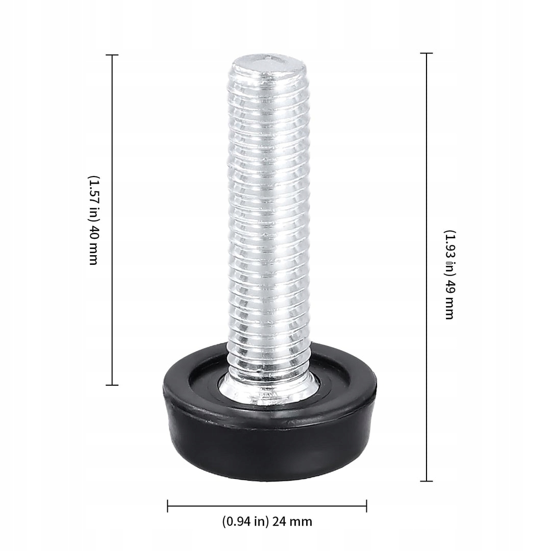 Простота установки. Эти винтовые ножки M10 диаметром 40 мм легко и быстро устанавливаются. Вам не потребуются какие-либо специальные инструменты, достаточно простых действий по сборке, что сэкономит ваше драгоценное время и усилия. Противоскользящая конструкция. Эти ножки M10 имеют нескользящую конструкцию, которая не только защищает пол от царапин и повреждений, но также обеспечивает устойчивость и безопасность во время использования. Высококачественные материалы. Наши винтовые ножки изготовлены из железа и пластика, которые тщательно разработаны и изготовлены для обеспечения прочности и долговечности, устойчивости к ржавчине и деформации с течением времени.