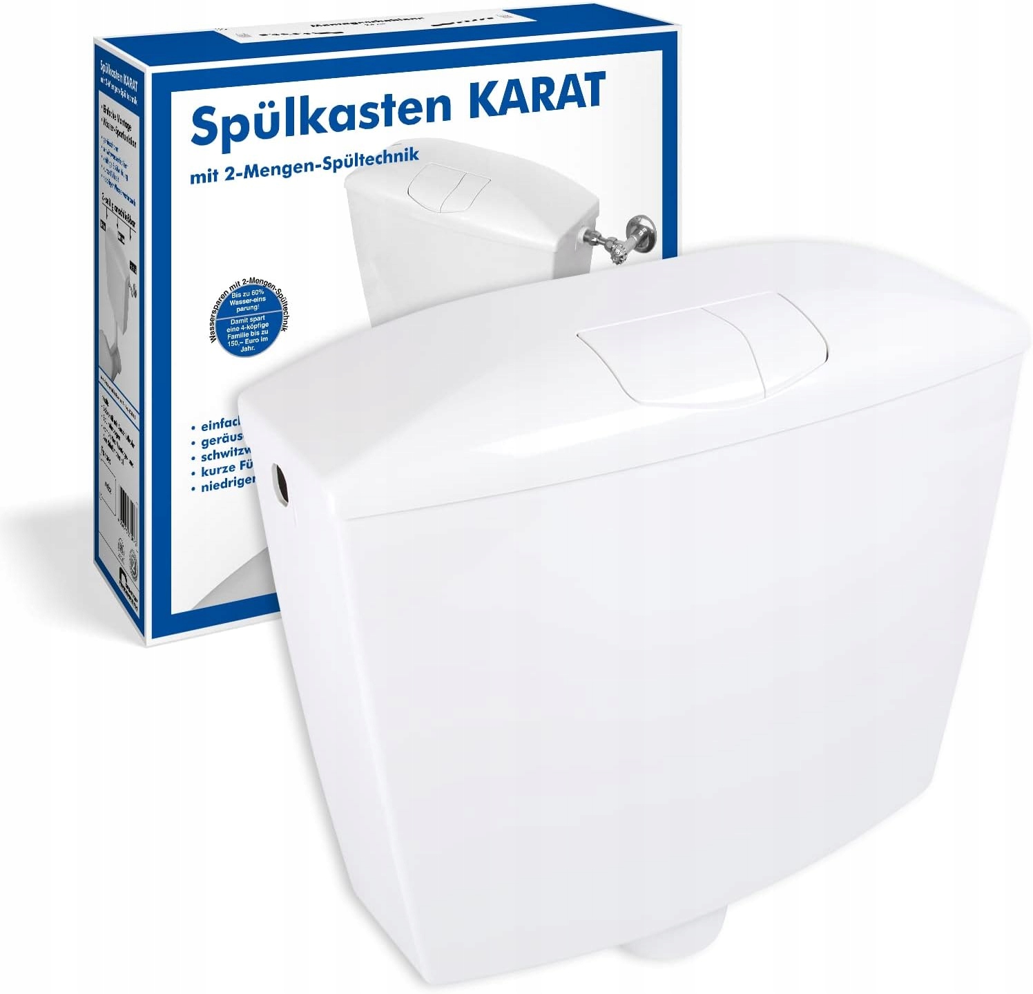 Цистерна Карат | белая цистерна. Практичный двухсторонний смыв, 3,5 л и 6-9 л. С отводом для смыва и соединителем для промывочной трубки. Полная изоляция: отсутствие конденсата, простота обслуживания. Низкий уровень шума. Тихий закон. задний (с отдельным комплектом подключения). Качественный товар хорошего качества, из белого пластика, высота х ширина х глубина: 385 х 450 х 145 мм. Вес: 3 кг. Крепежный материал включен в комплект
