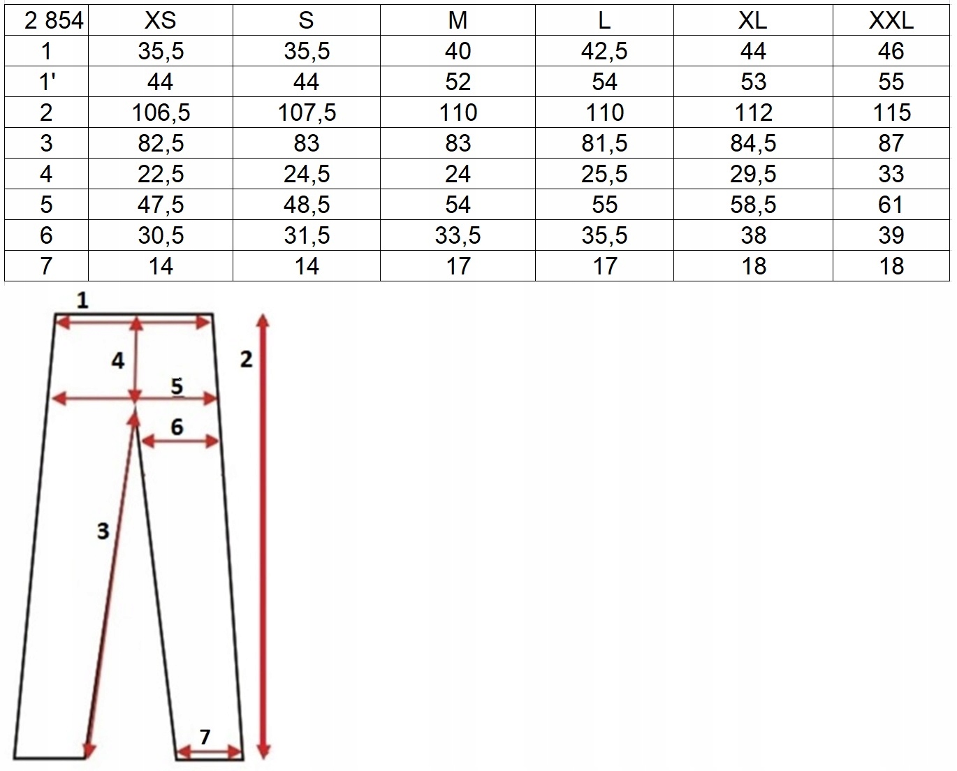 (1) Ширина на талии без растяжения