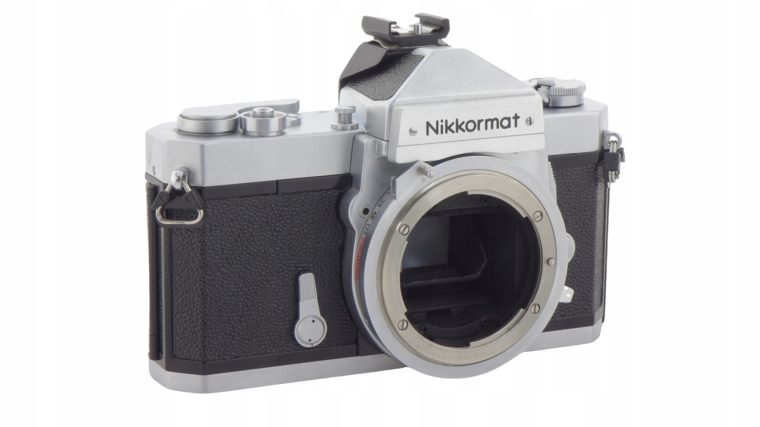 nikkormat ( nichem simpless verserver nikon. и дешевле, чем камеры Nikon, но приняли те же линзы, что и камеры Nikon. Цвета: черный с хромированной отделкой и совершенно черный. Свет без измерения света был отмечен как «Nikkormat FS».