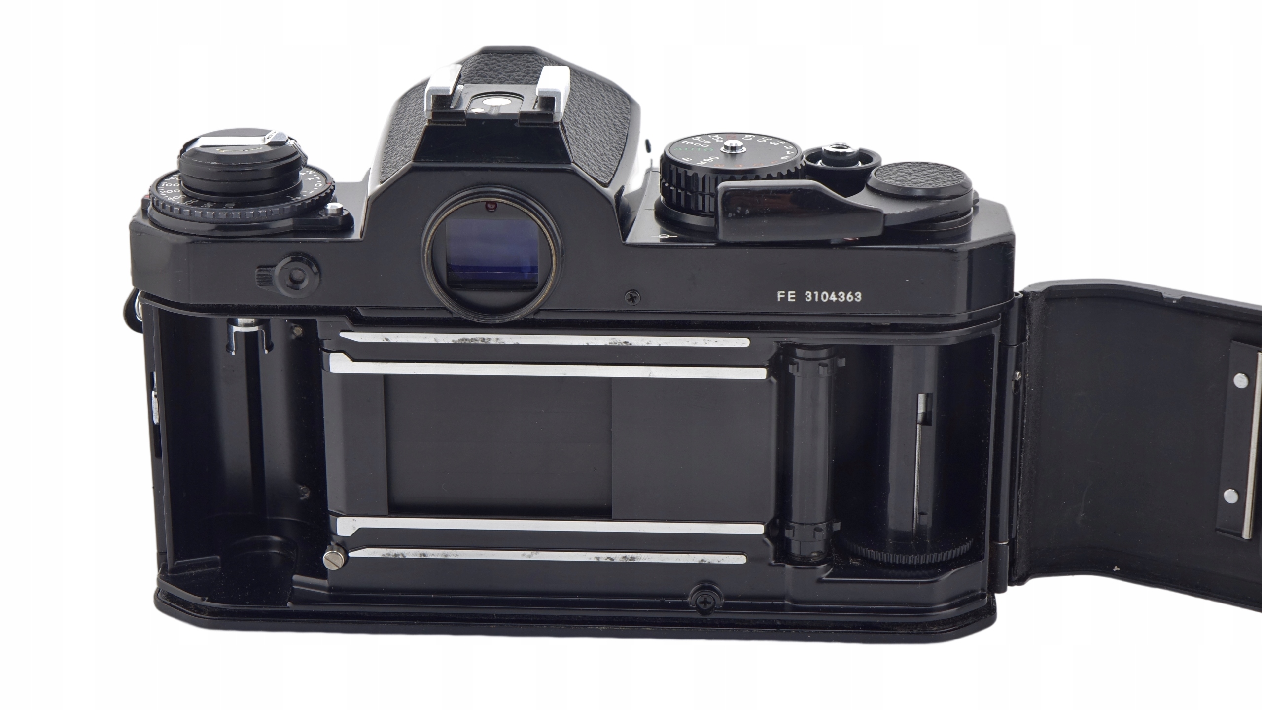 W В FE использован фокальный затвор с металлической лопастью и вертикальным сдвигом с диапазоном выдержек от 8 до 1/1000 секунды, а также выдержка от руки и вспышки X-синхронизация 1/125 секунды.