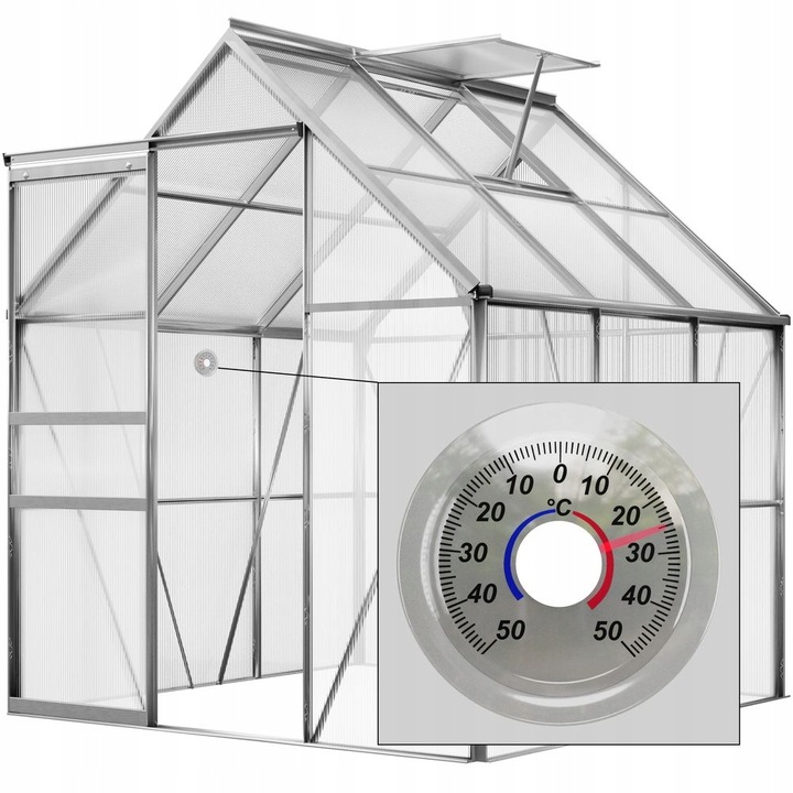 Grulhouse 5,8 м³ с окном на крыше, стальным желобом и высококачественной стабильной теплицей с окном на крыше, состоящей из анодированных алюминиевых профилей и теплоизоляционного стекла с пустыми камерами. Практическое складное окно крыши обеспечивает адекватную циркуляцию воздуха. Тузет стекает дождевая вода вдоль стен теплицы. Это означает, что они могут быть собраны и использованы непосредственно в правильных контейнерах >