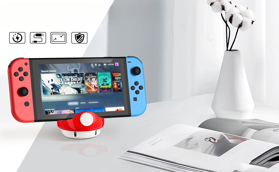 - 🎮 Идеальный вид: при разработке этой зарядки станции на консоли Nintendo Switch мы использовали классические персонажи из игр для консоли Nintendo Switch. Это не только портативная зарядная станция, но и подставка для декоративных игр.