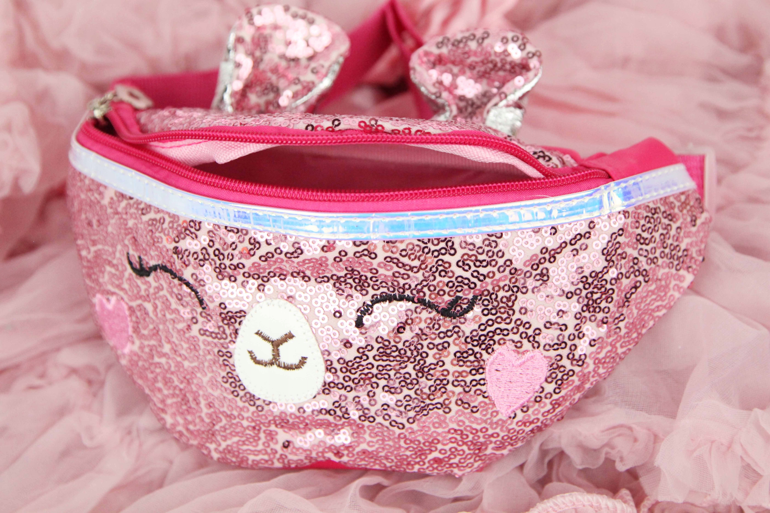 В середине переднего кармана среди сказочно блестящих пайеток изображена очаровательная мордочка ламы с эффектными ушками.