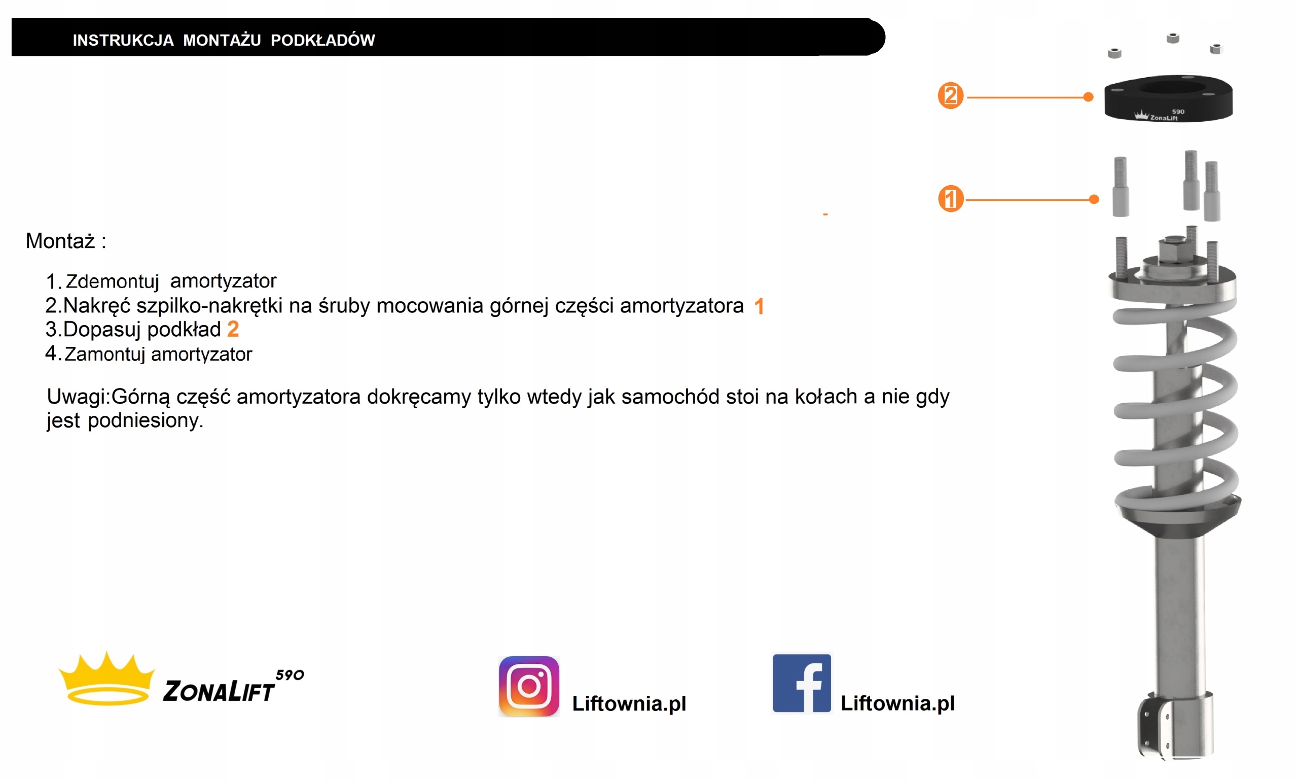 - 2 подкладки для переднего MCPherson (высота 30 мм) *проставки поднимаются на 50 мм