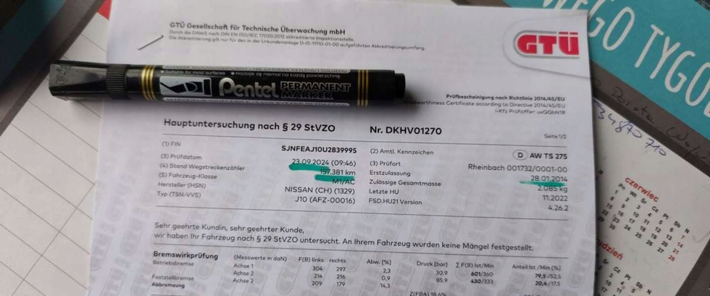 NISSAN QASHQAI импортирован из Германии. В цену включены регистрационные сборы – только отдел связи платит покупателю 160 злотых. Автомобиль 2013 года выпуска, первая регистрация январь 2014 года. Очень хорошее техническое и визуальное состояние. Экономичный дизельный двигатель обеспечивает низкий расход топлива – в среднем 4,5 л/100 км. Салон ухоженный, удобный и практичный — идеален для семьи или в качестве городского автомобиля. Автомобиль с крайне малым, полностью подтвержденным пробегом - у меня есть сервисная книжка, все периодические осмотры TUV, счета за годы. Автомобиль с богатым заводским оснащением: Панорамная крыша Навигация Камера заднего вида плюс камера 360° ABS, ESP, система распределения тормозных усилий Комплект подушек безопасности (передние, боковые, шторки) Двухзонный автоматический кондиционер Зеркала с электроприводом и подогревом - автоматически складывающиеся Все электростеклоподъемники Bluetooth, радио, радиоуправление с руля ISOFIX - крепления сидений детский Круиз-контрольКожаный руль с управлением магнитолой и круиз-контролемПодогрев передних сиденийКожаный салонДождь и сумерки датчик