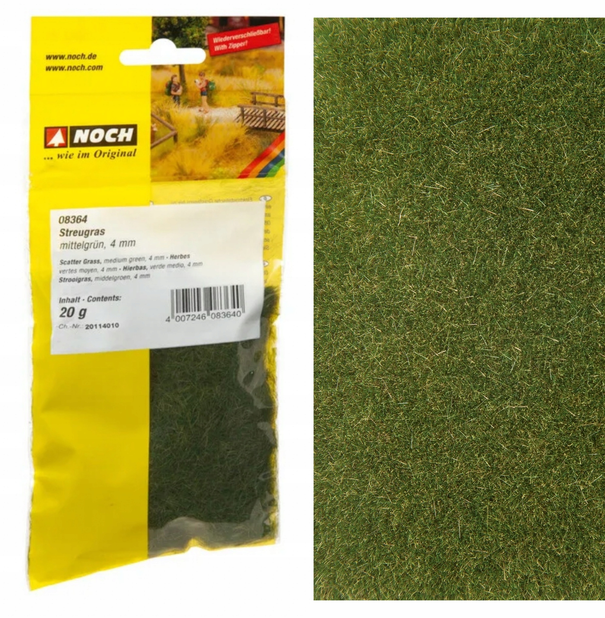 Noch 08364, электростатическая трава "средняя зеленая", 4 мм/20 г